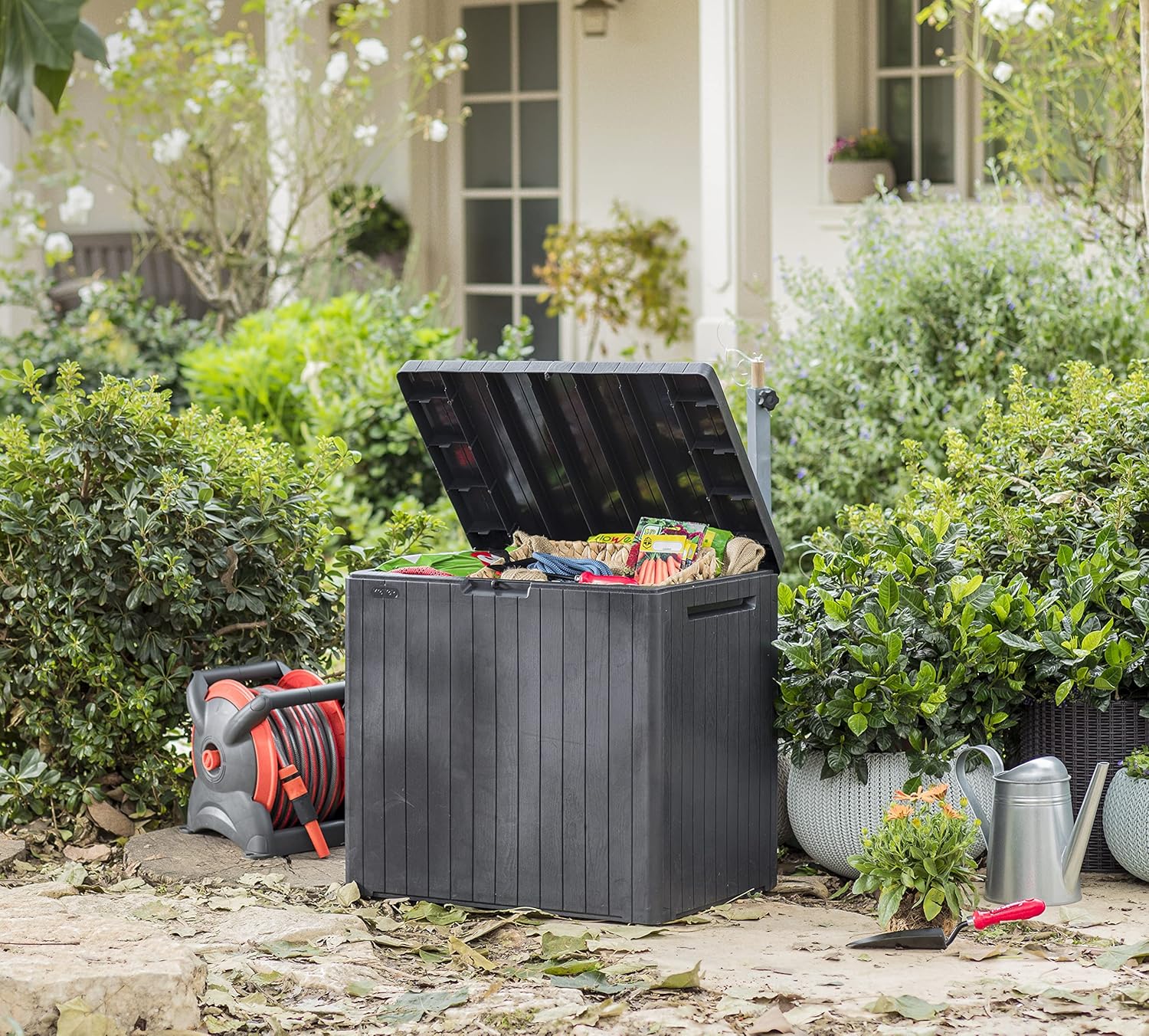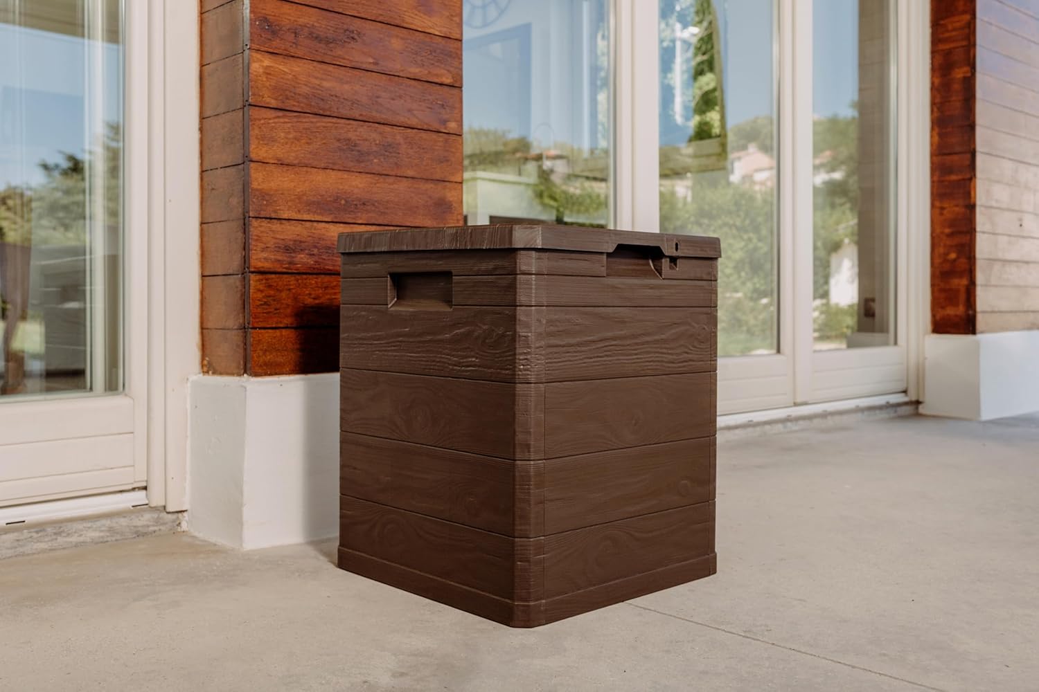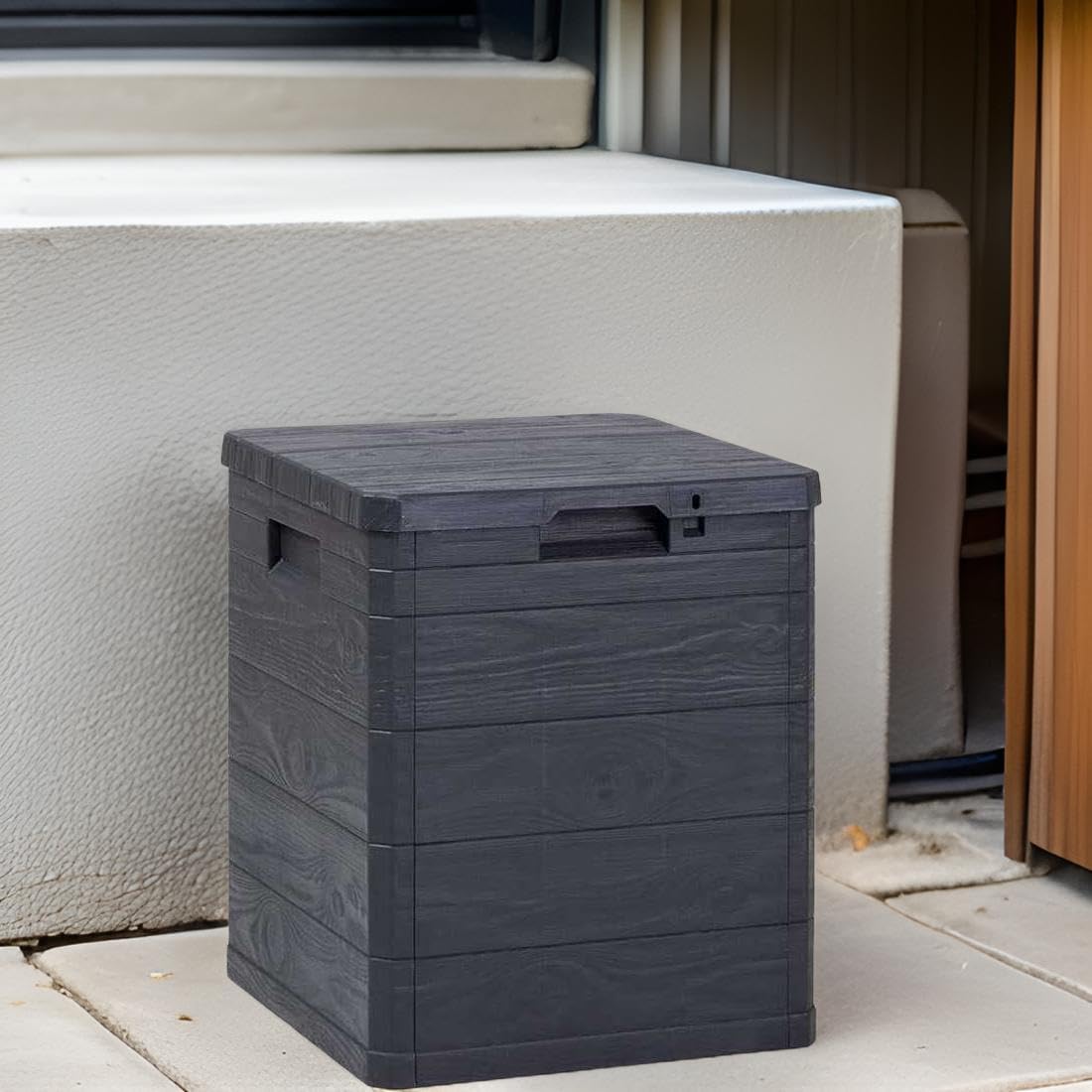 MA MAISON Bauletto Multibox da Giardino 90 Litri Effetto Simil Legno Contenitore Stoccaggio in Resina Antracite 42,5x44x50h cm da Esterno da Interno Resistente ai Raggi Uv - Made in Italy