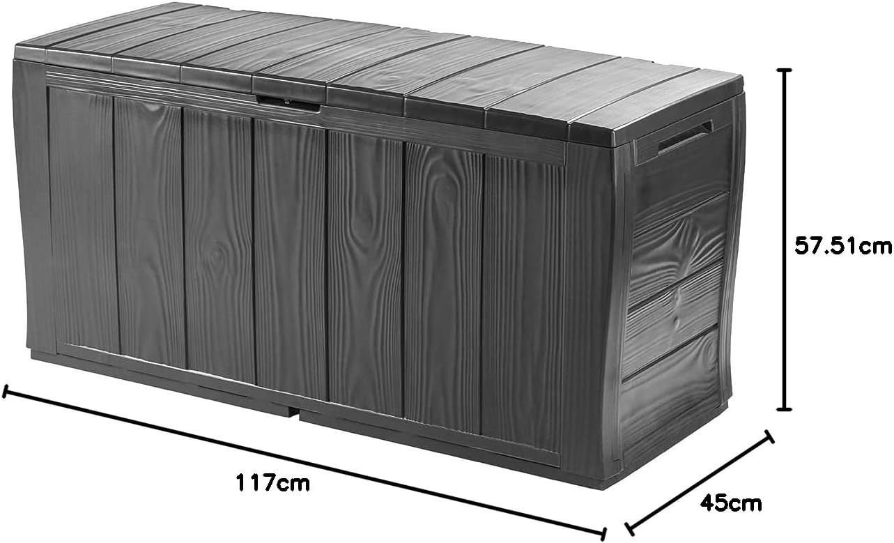 MA MAISON Baule Cassapanca 280 Litri Effetto Legno Contenitore Stoccaggio in Resina Antracite Dimensioni 117x45x56h cm da Esterno Resistente ai Raggi Uv - Made in Italy