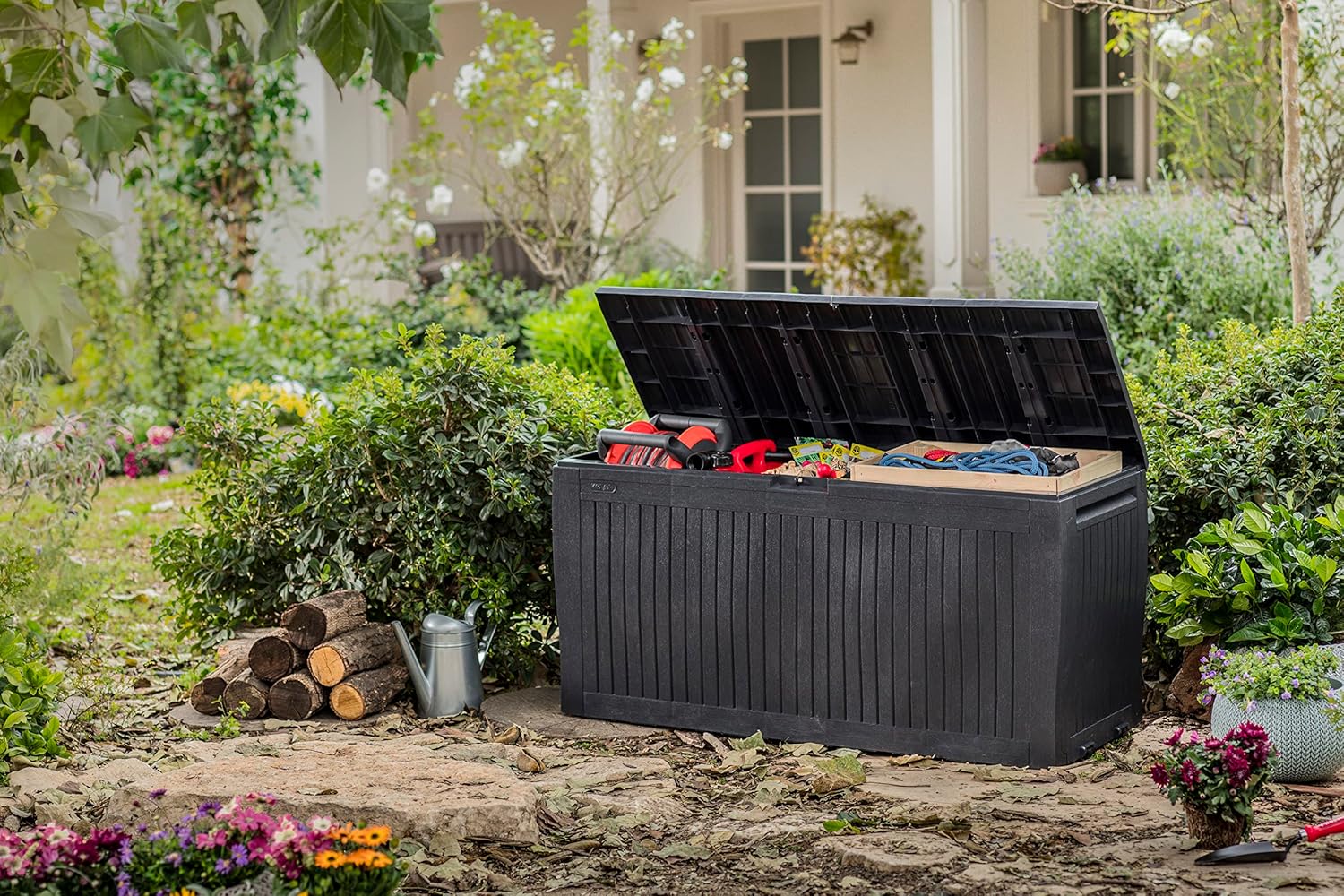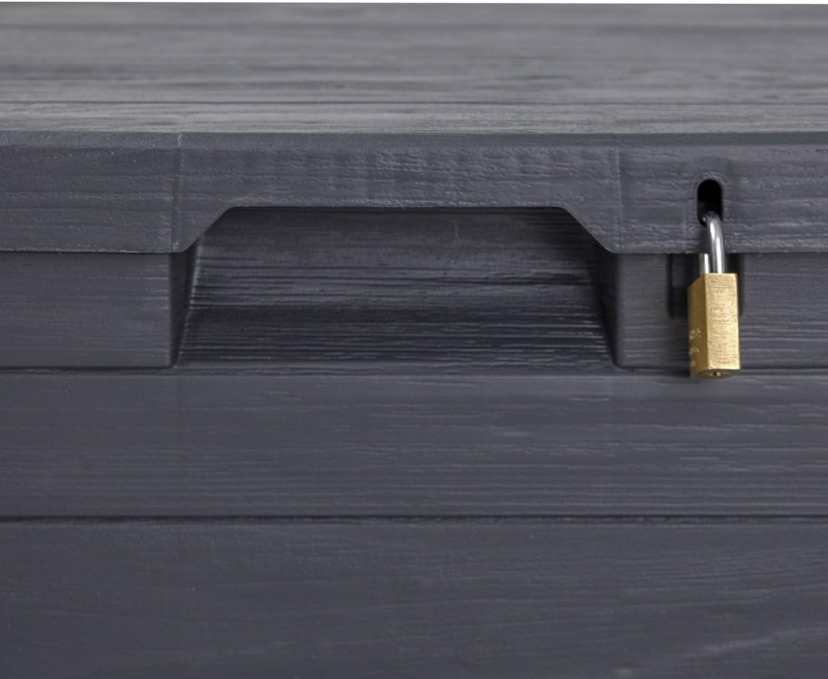 Domo Mea Baule da170 Litri Effetto Legno, Contenitore Stoccaggio, in Resina Antracite, Dimensioni 78L x 55l x 52H cm