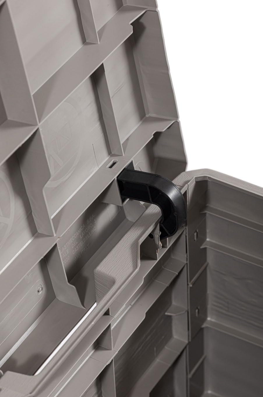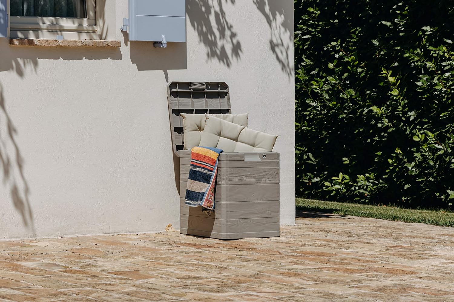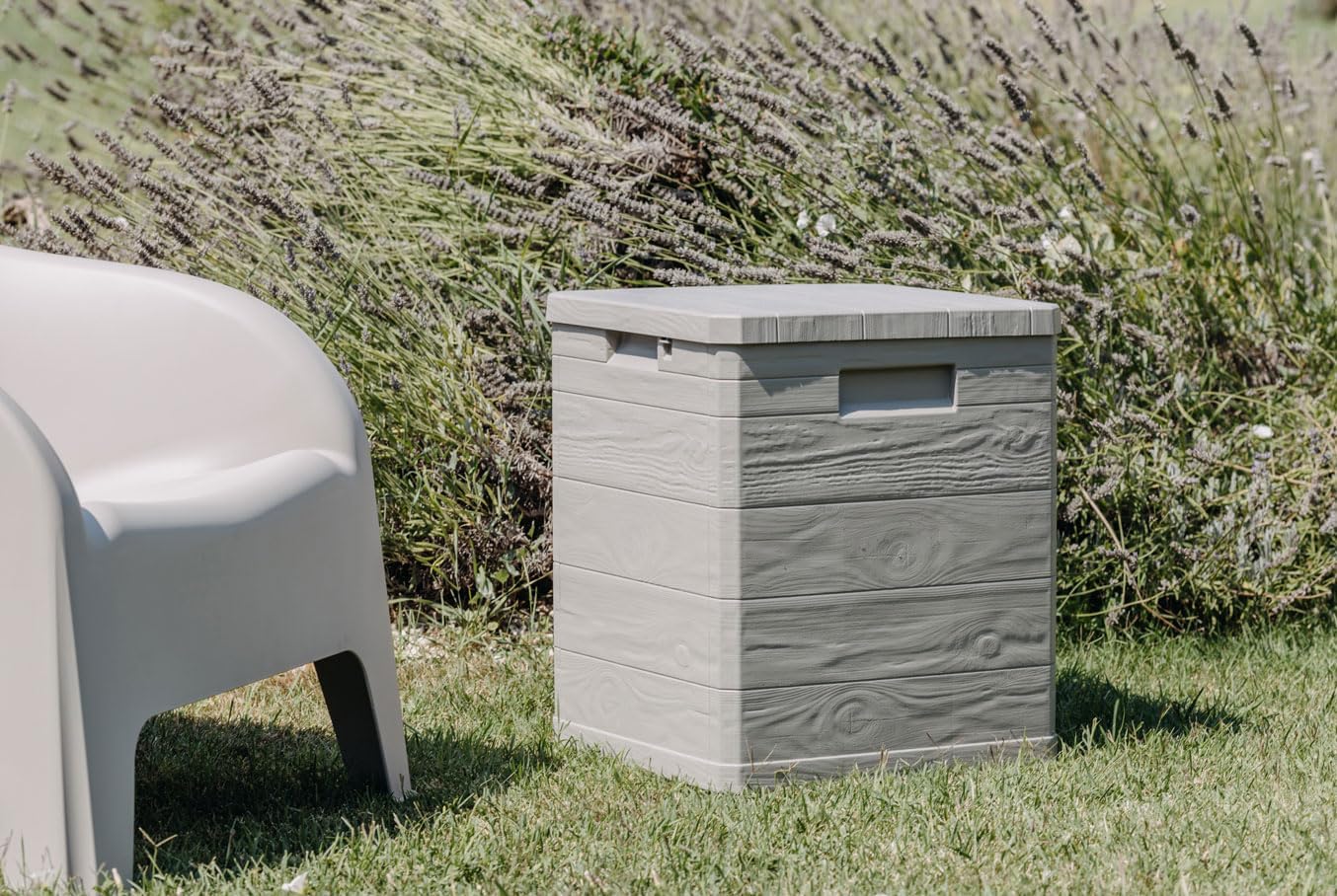 Toomax baule Multibox Woody's portattrezzi per esterni, baule da 160L, colore grigio tortora, dimensioni cm 77,5x44,5x52,7h
