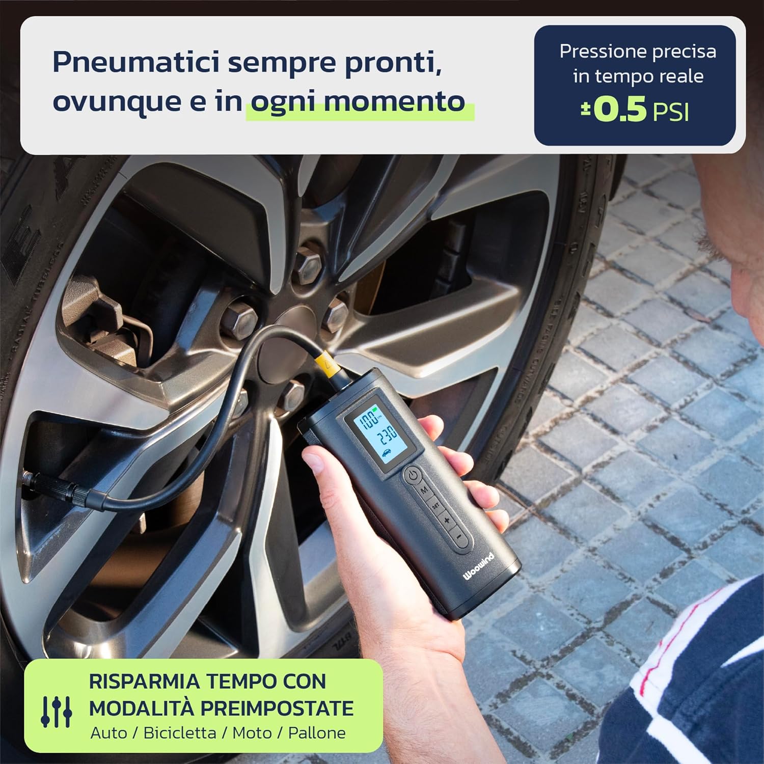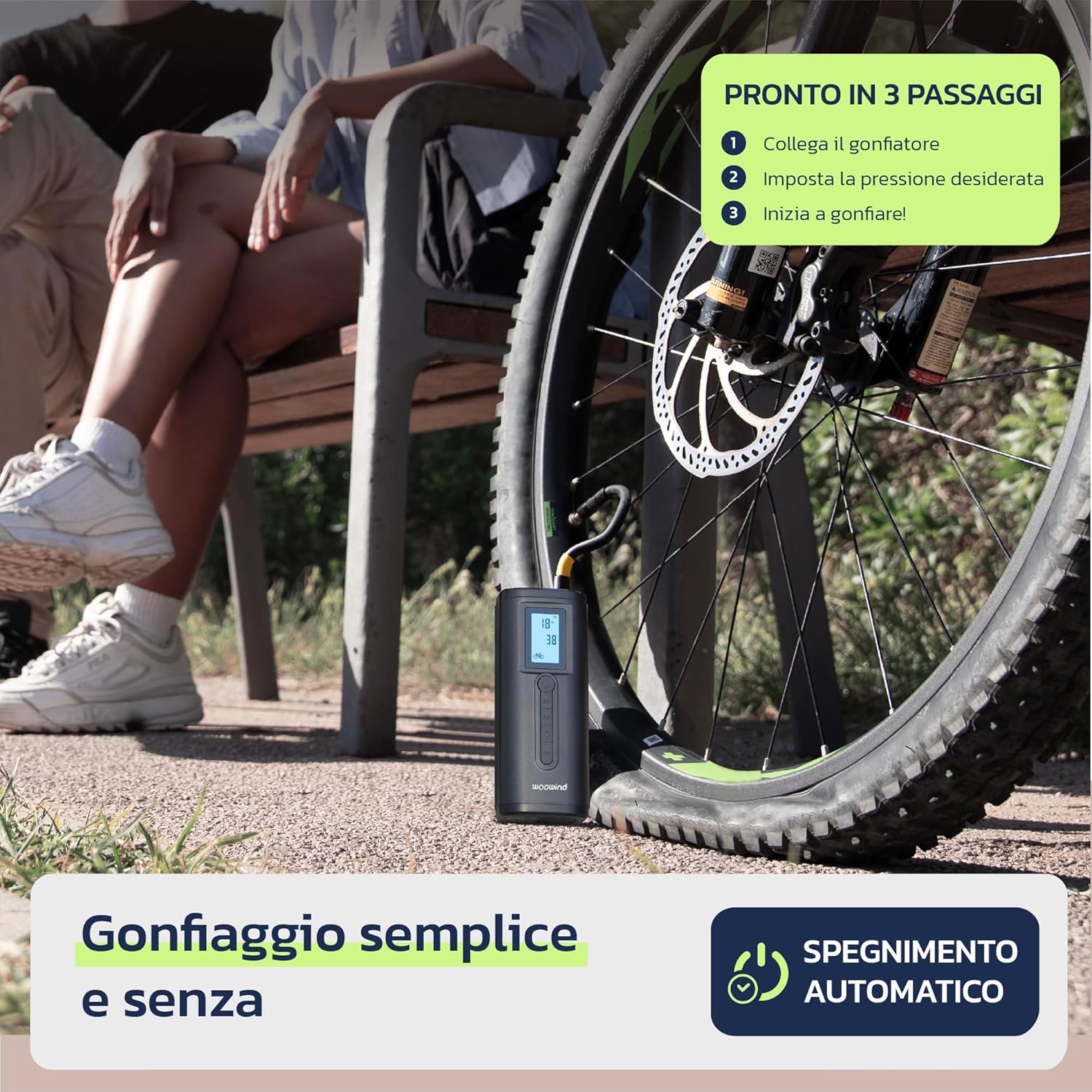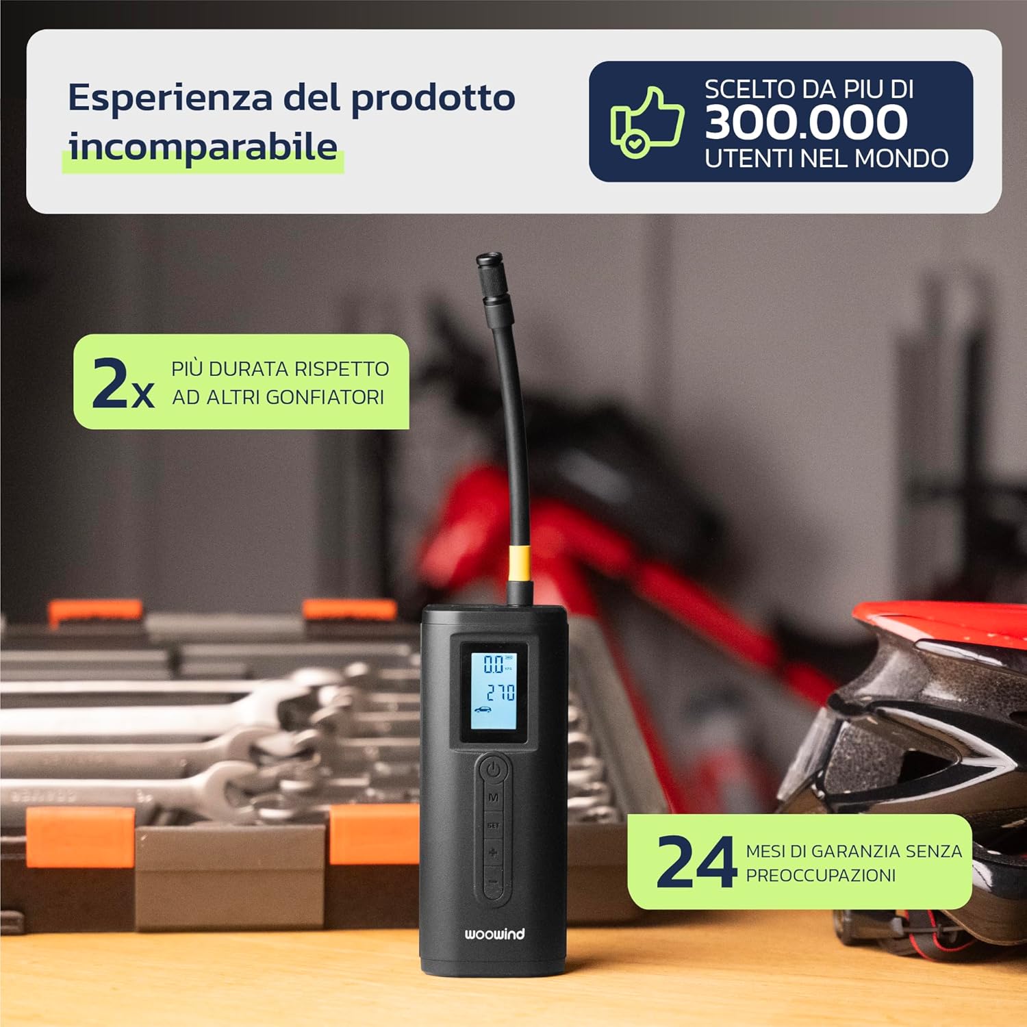 Woowind LP1 Portable Air Compressor, Electric Bicycle Pump, 150PSI, Car Tire Inflator, Mini Portable Compressor, Auto Shut-off for Car, Motorcycle, Bicycles and Balls