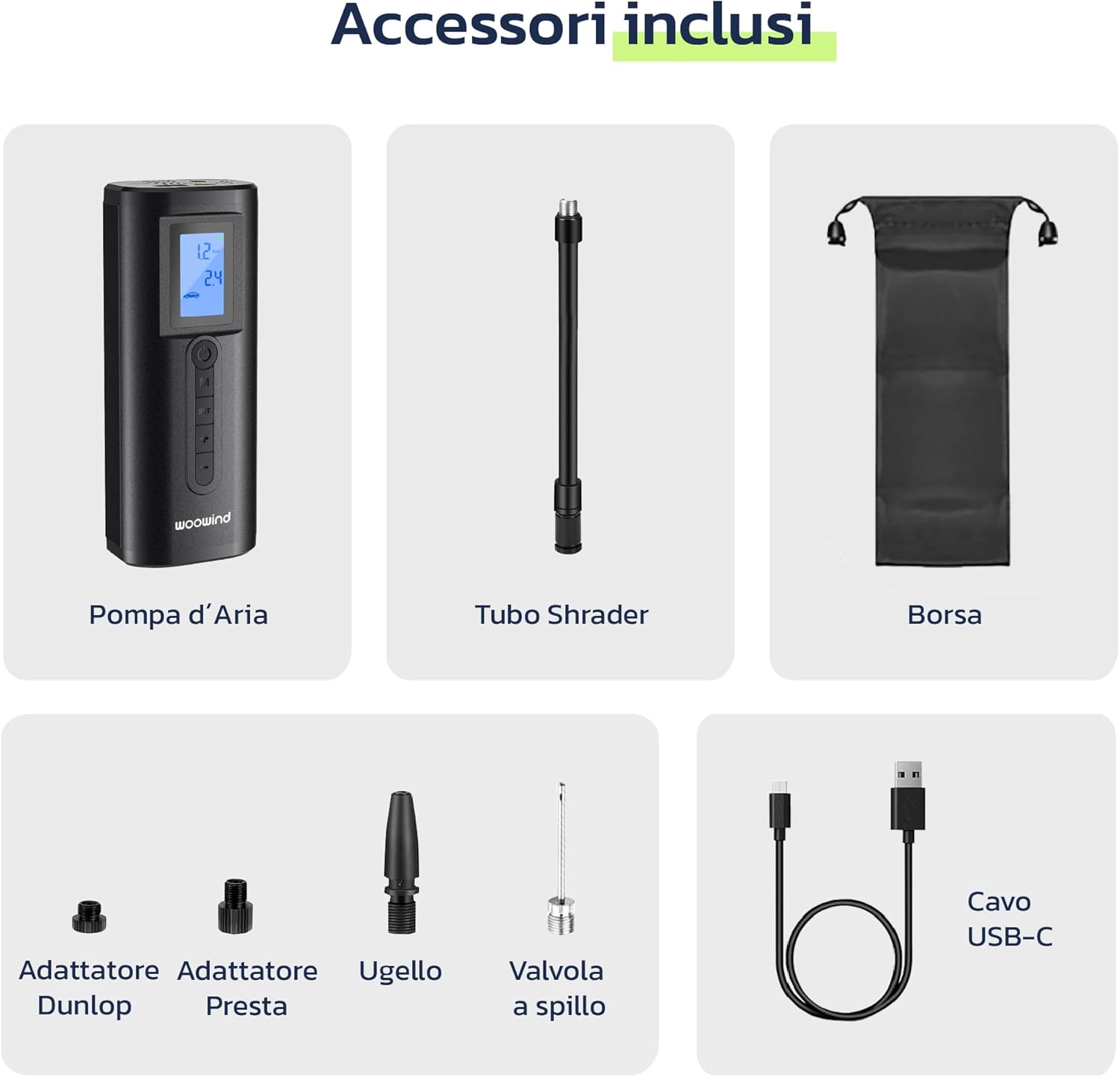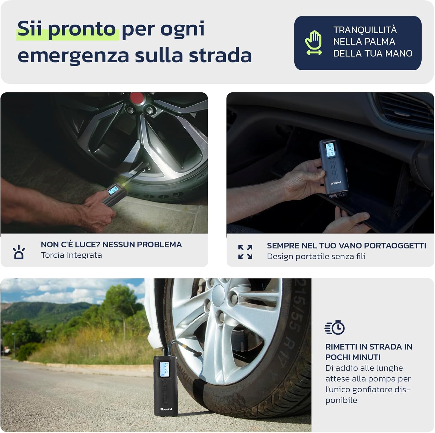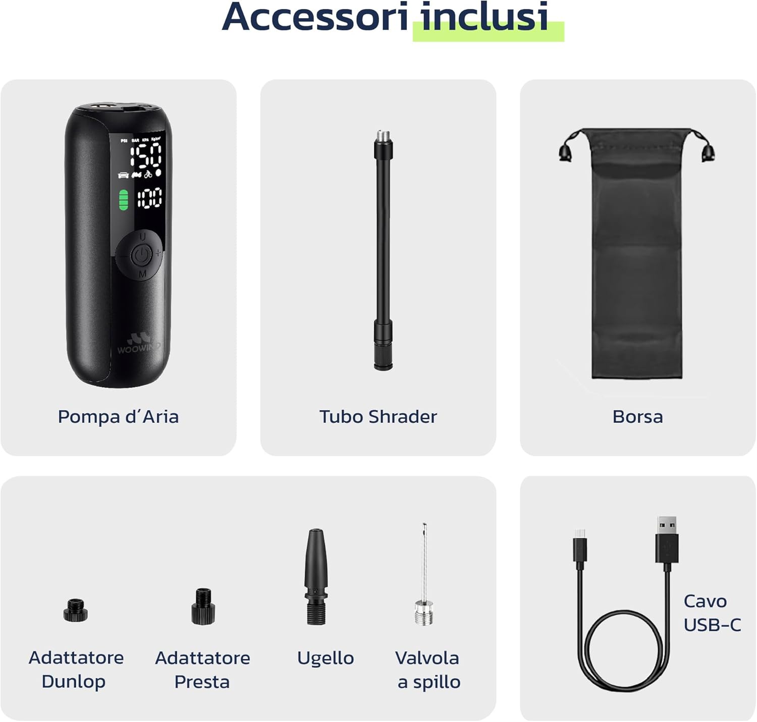 Woowind LP1 Portable Air Compressor, Electric Bicycle Pump, 150PSI, Car Tire Inflator, Mini Portable Compressor, Auto Shut-off for Car, Motorcycle, Bicycles and Balls