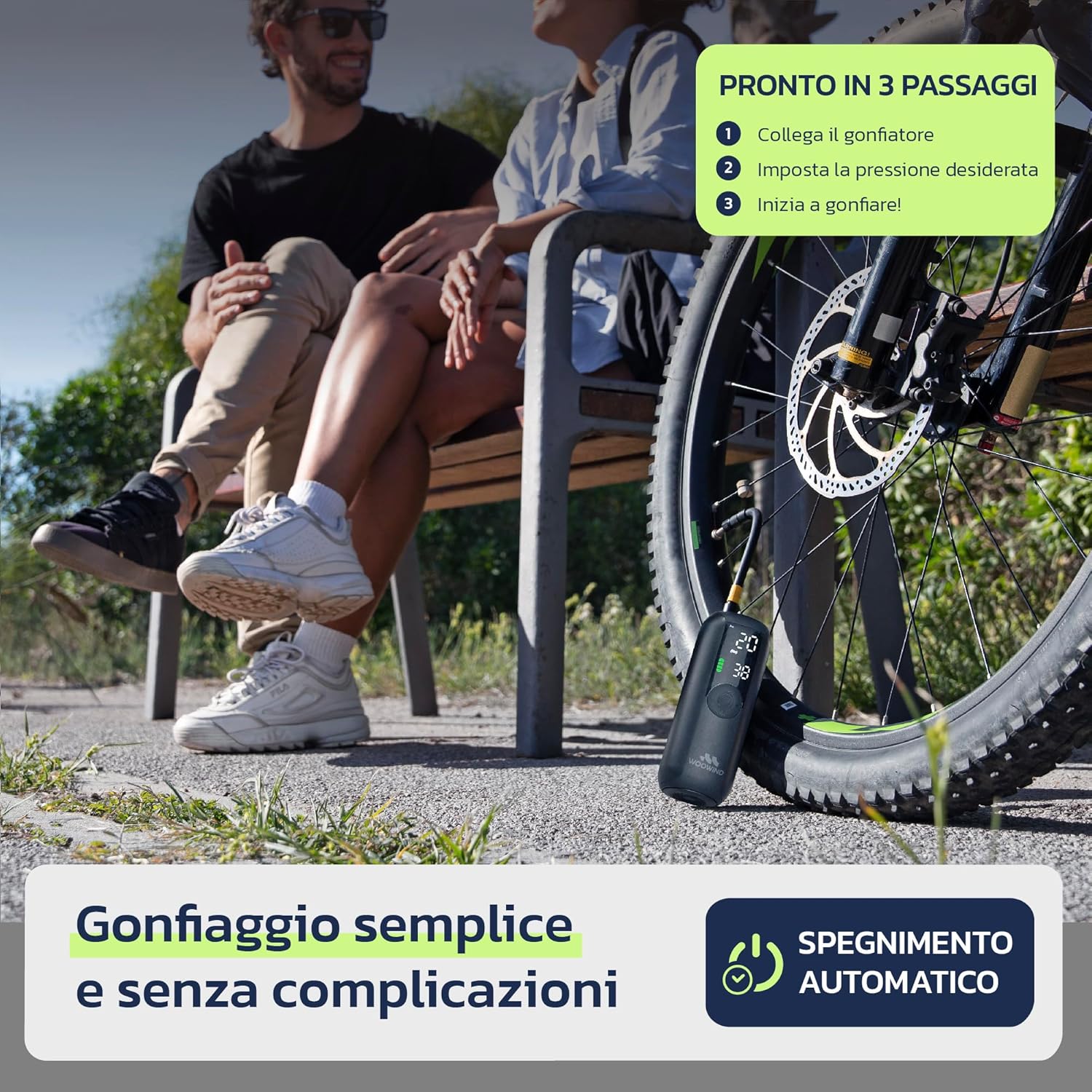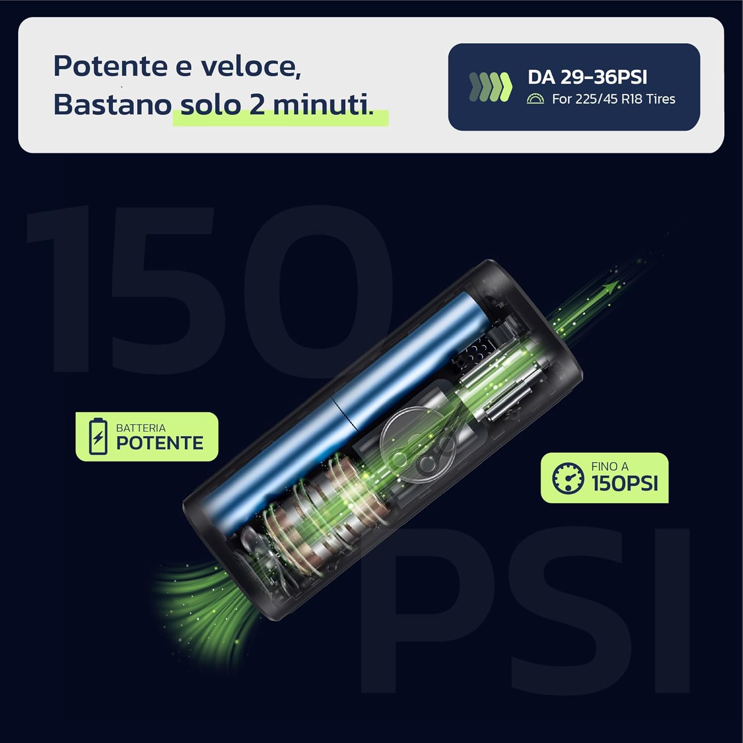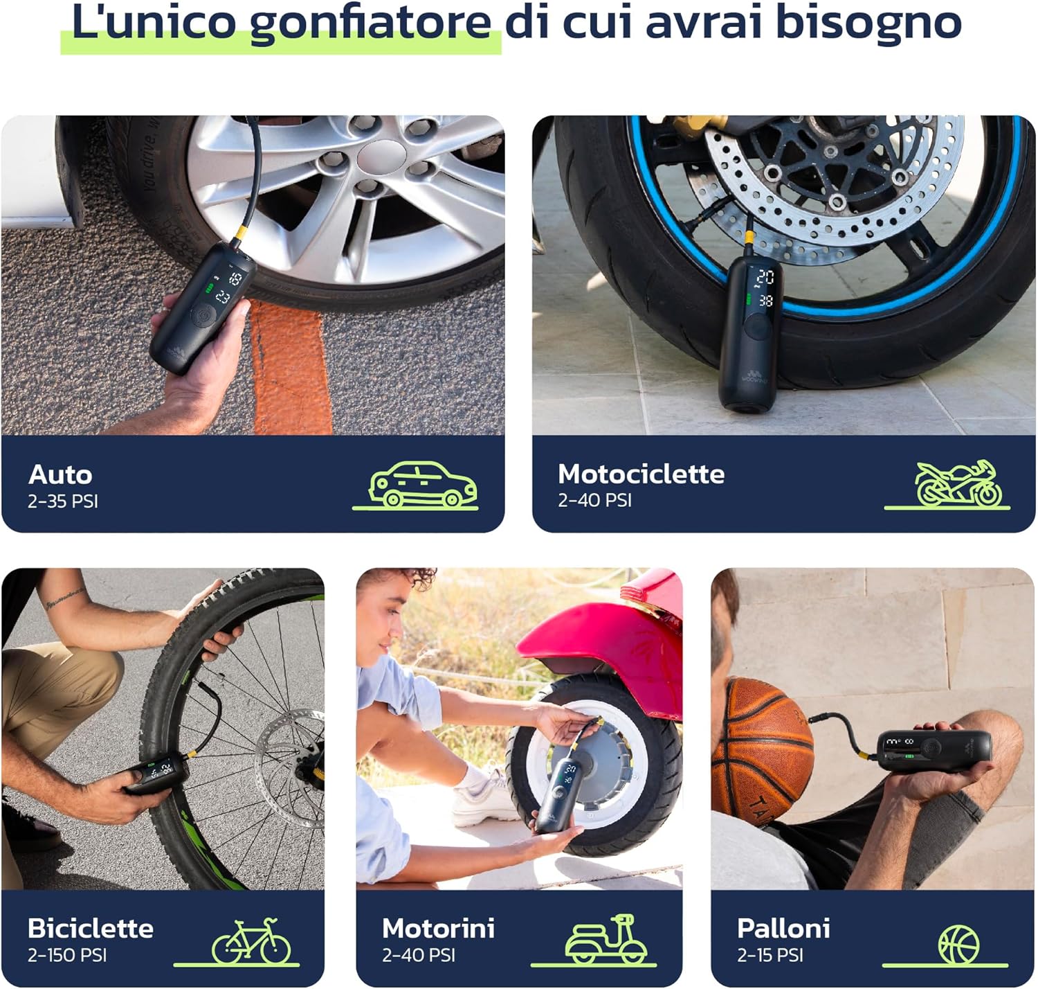Wistrue 6000mAh Mini Compressore Aria Portatile 150PSI Gonfiatore Elettrico con Batteria Ricaricabile, Schermo LCD Digitale, Pompa per Bicicletta, Auto, Moto, monopattino, Palloni