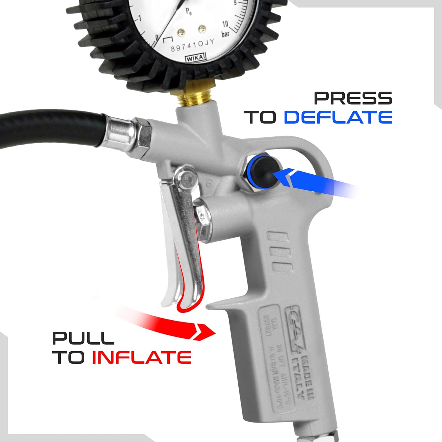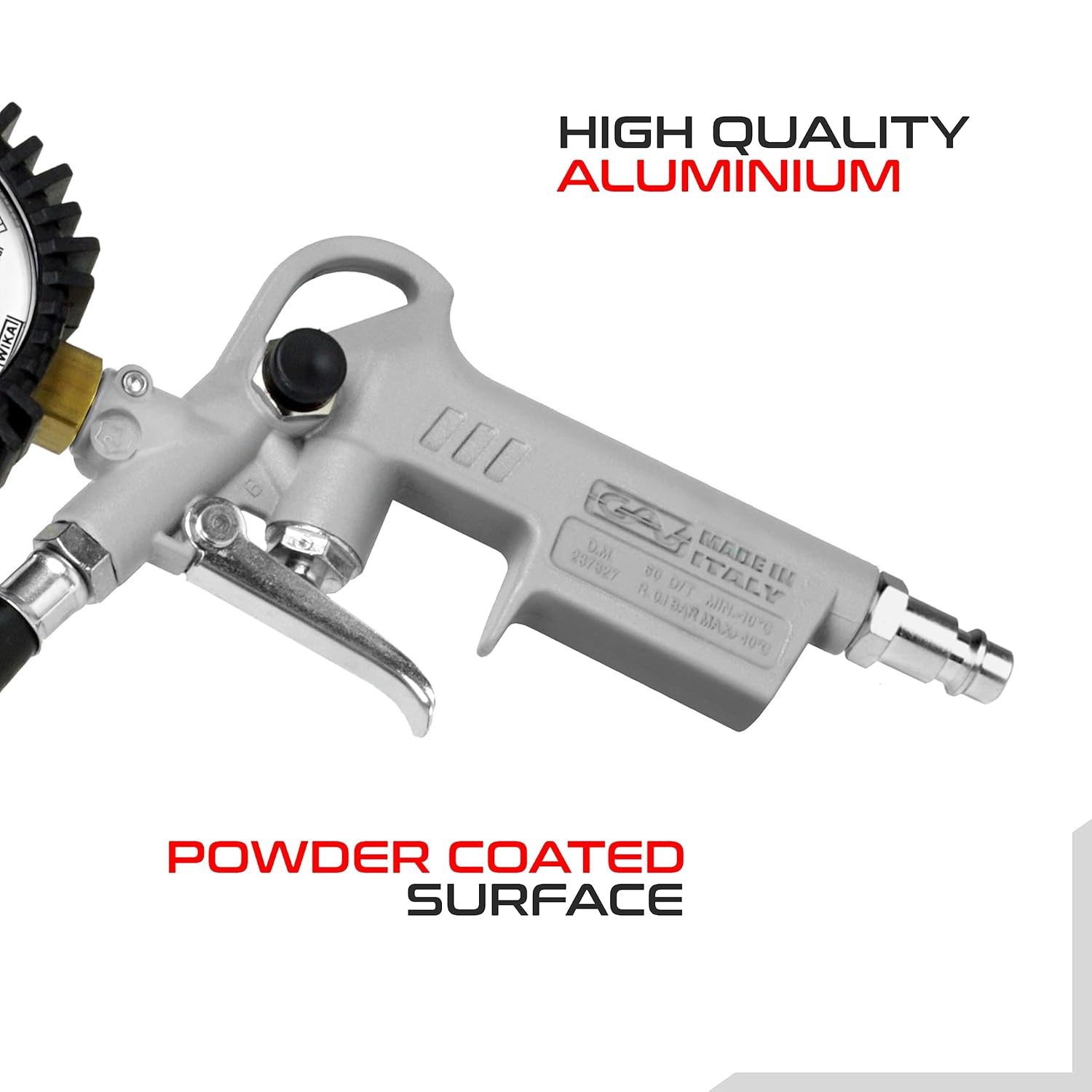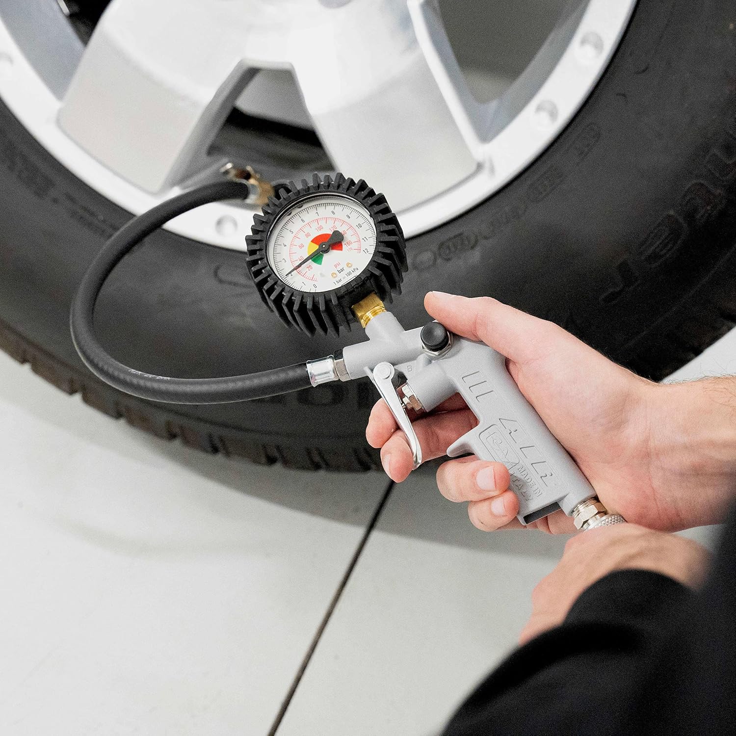 GAV Pistola Gonfiaggio Pneumatici Professionale Made in Italy con Manometro Pressione WIKA da 63mm per Pressione Gomme di Auto Moto Camion e Biciclette - Scala in BAR Psi - 60D (Standard)