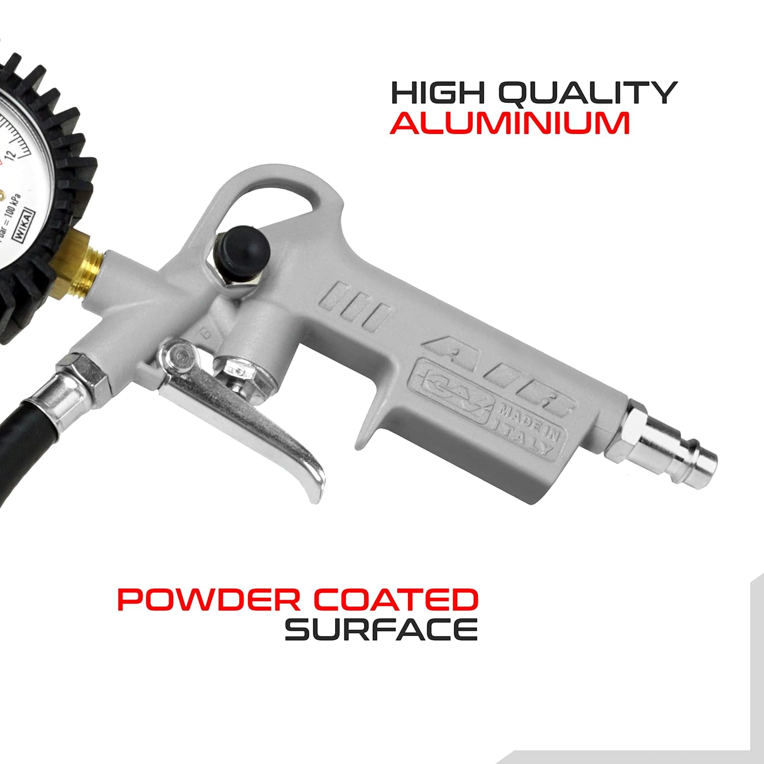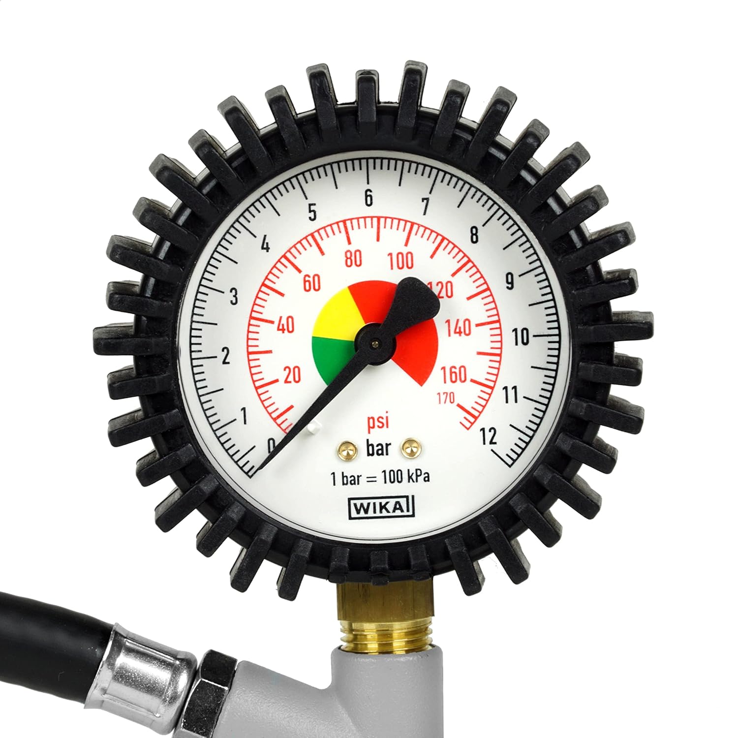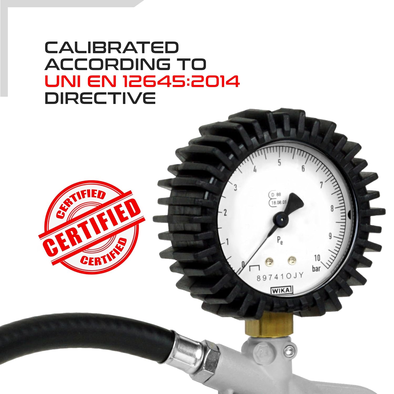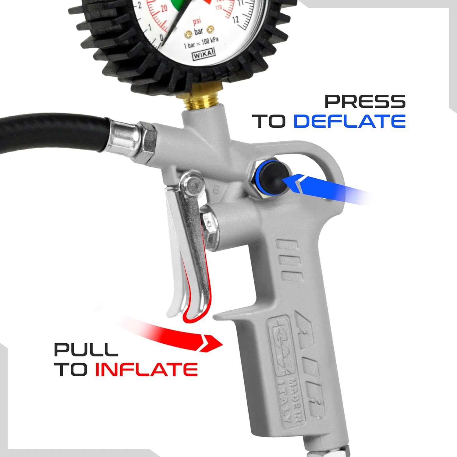 GAV Pistola Gonfiaggio Pneumatici Professionale Made in Italy con Manometro Pressione WIKA da 63mm per Pressione Gomme di Auto Moto Camion e Biciclette - Scala in BAR Psi - 60D (Standard)