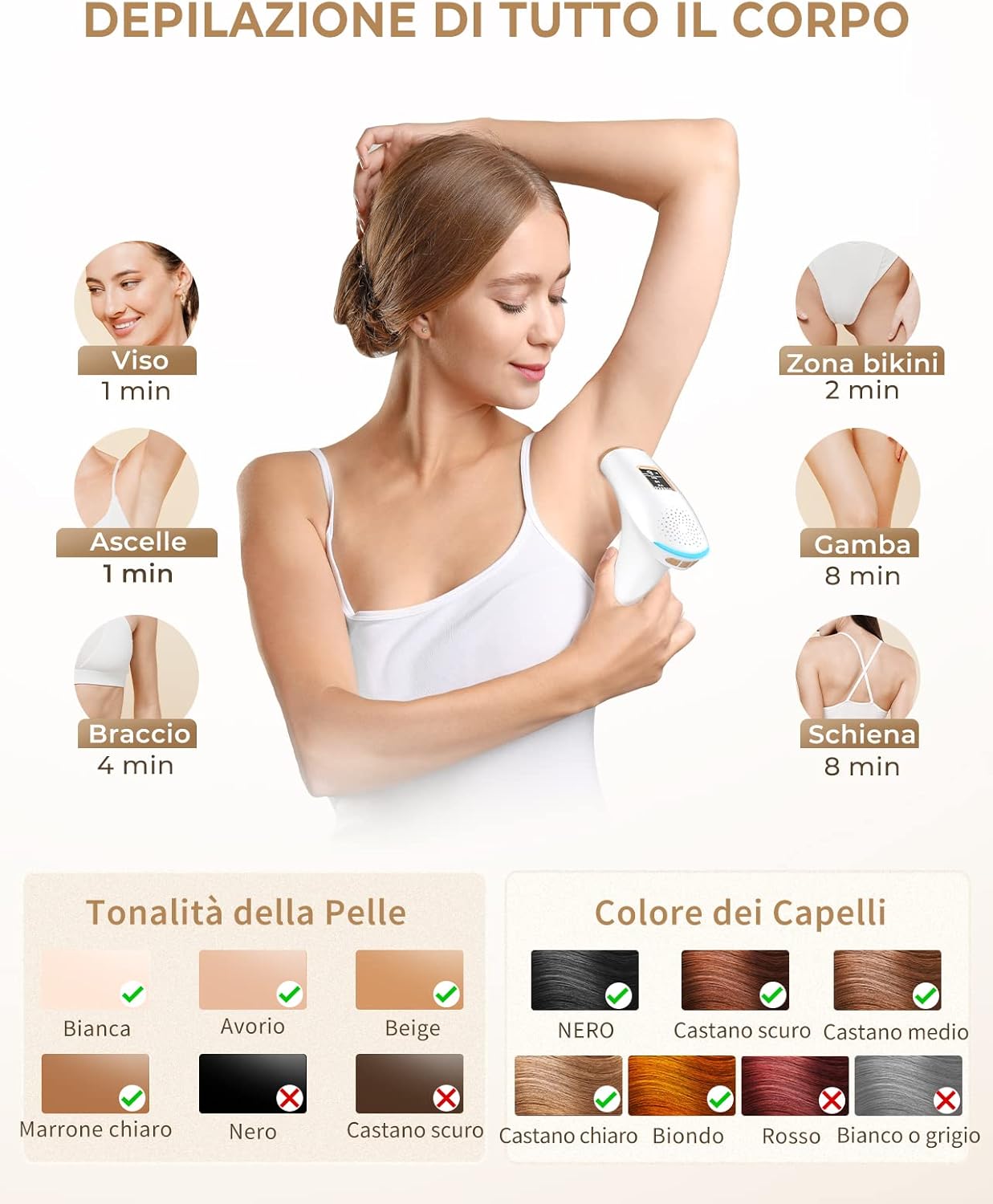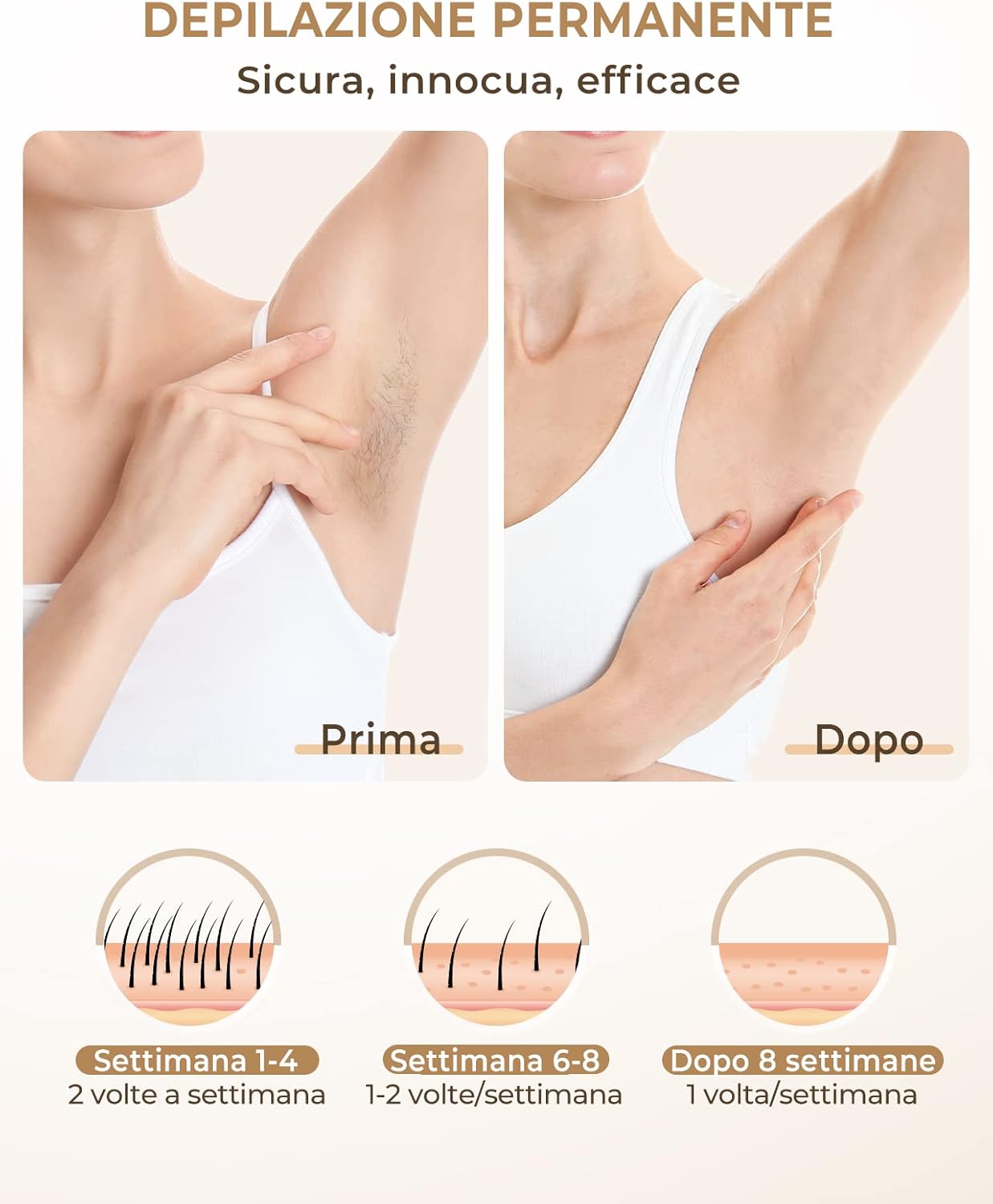 Epilatore Luce Pulsata, 600-1200NM Laser Epilatore Luce Pulsata, 0,8s Flash Rapido IGBT, Max 19,8J, Lampi Illimitati, 3 modalità energetiche Epilatore Laser per Donna, Corpo, Ascelle, Bikini