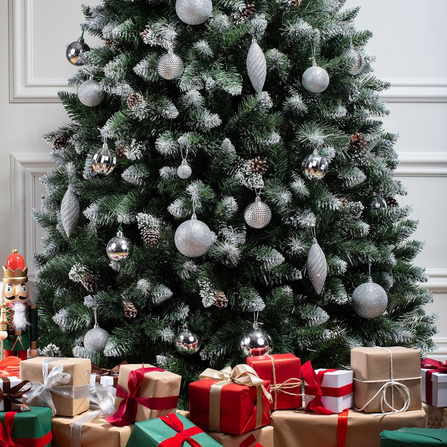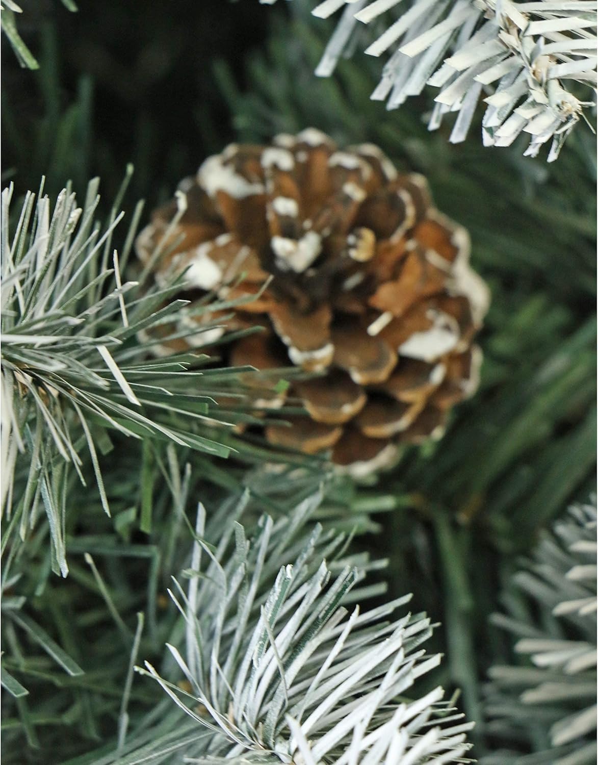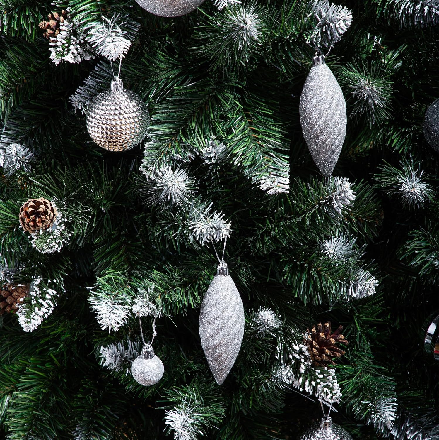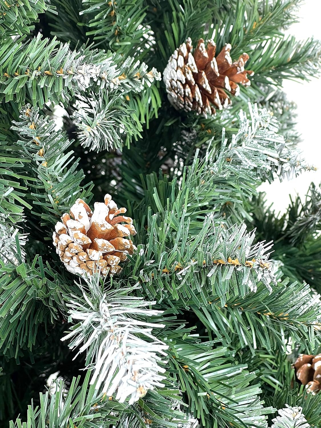 Albero di Natale artificiale FairyTrees 180cm pino naturale con supporto in legno | Abete di Natale con pigne naturali e punte bianche innevate | Facile da Montare | Prodotto in EU
