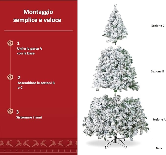 Albero di natale INNEVATO 150/180/210/230/270CM SUPERFOLTO REALISTICO (180)