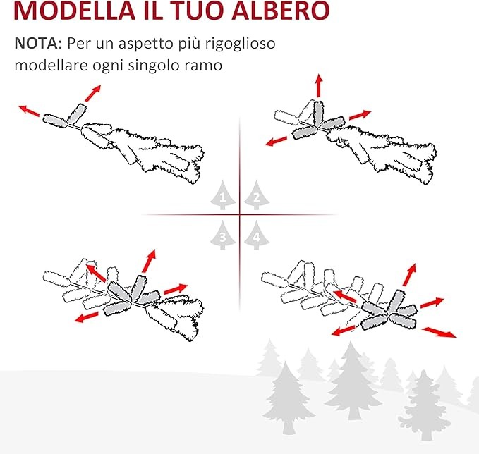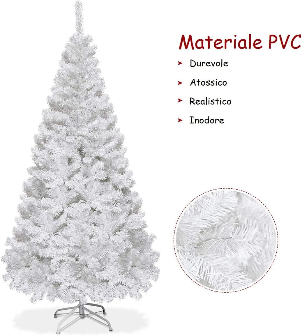 COSTWAY Albero di Natale 150/180/210/240 cm, Albero di Natale Bianco con 350/650/950/1138 Rami in PVC e Supporto in Metallo, Albero di Natale Artificiale per Casa, Ufficio e Negozio (180 cm)