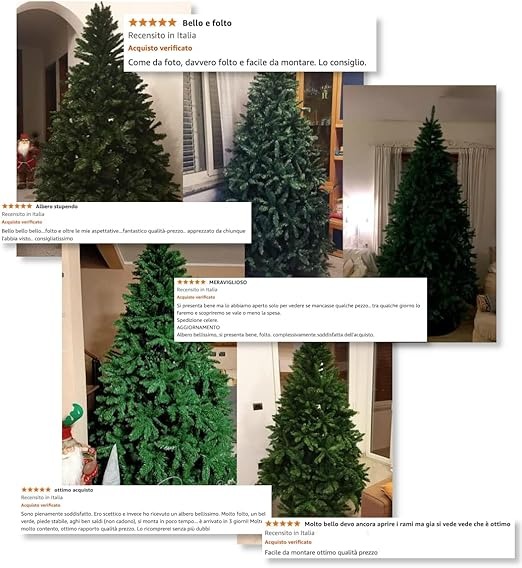 Albero di Natale Classico Verde Super Folto Rami ad ombrello Realistico Artificiale con base in metallo (Altezza 210 cm - 1560 Rami)