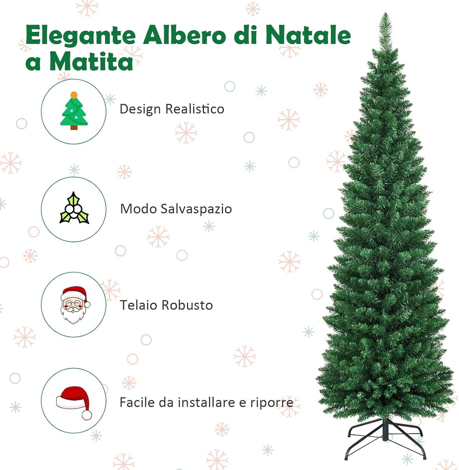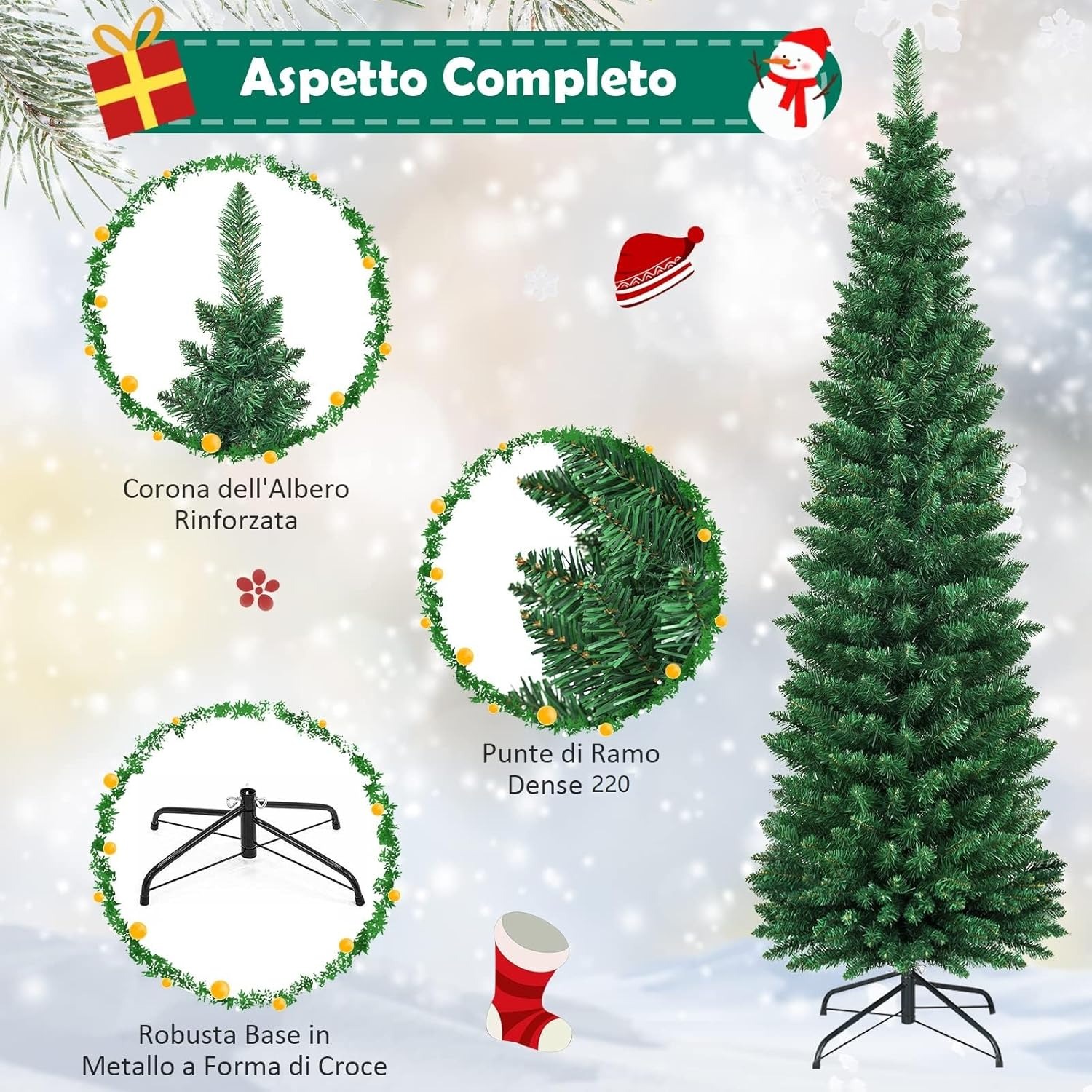 COSTWAY Albero di Natale 150/180/210/240 cm, Albero di Natale Slim con 220/400/700/1000 Rami Folti e Realistici e Base in Metallo, Albero di Natale Artificiale per Casa e Negozio, Verde (240 cm)