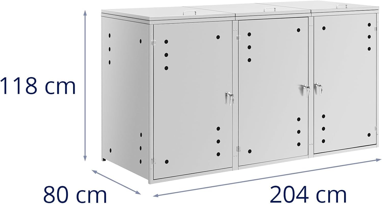 Uniprodo Copribidone per spazzatura 3 x 240 l Fori di ventilazione copri cassonetto della spazzatura Copribidone dei rifiuti Copri bidoni spazzatura Copribidone per spazzatura acciaio inox