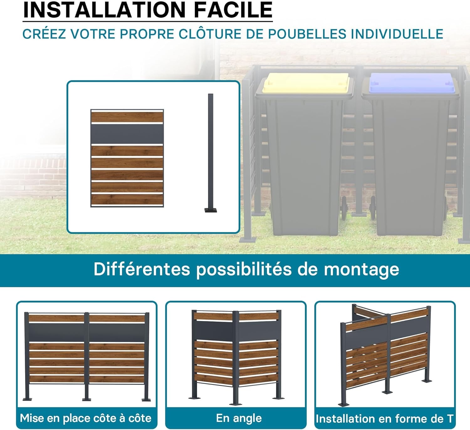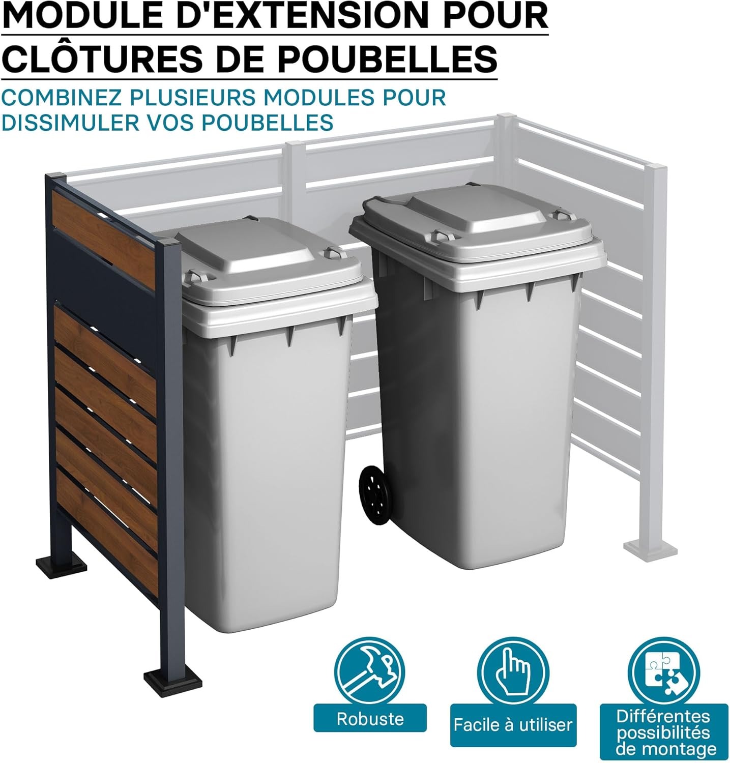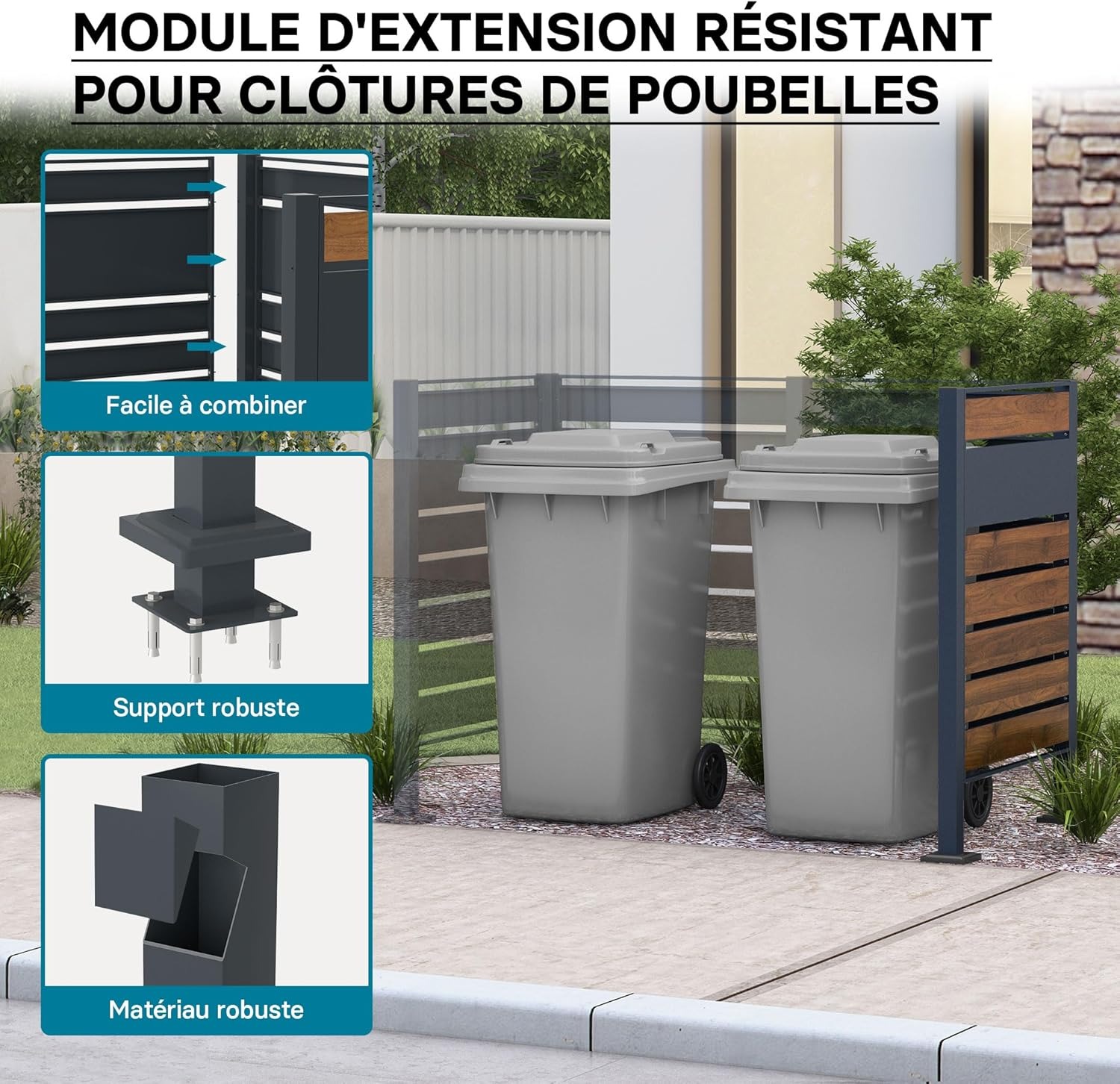 Wiltec Estensione per copri bidoni della spazzatura, copribidone da esterno in acciaio antracite ed effetto legno, porta bidoni, recinto cassonetti