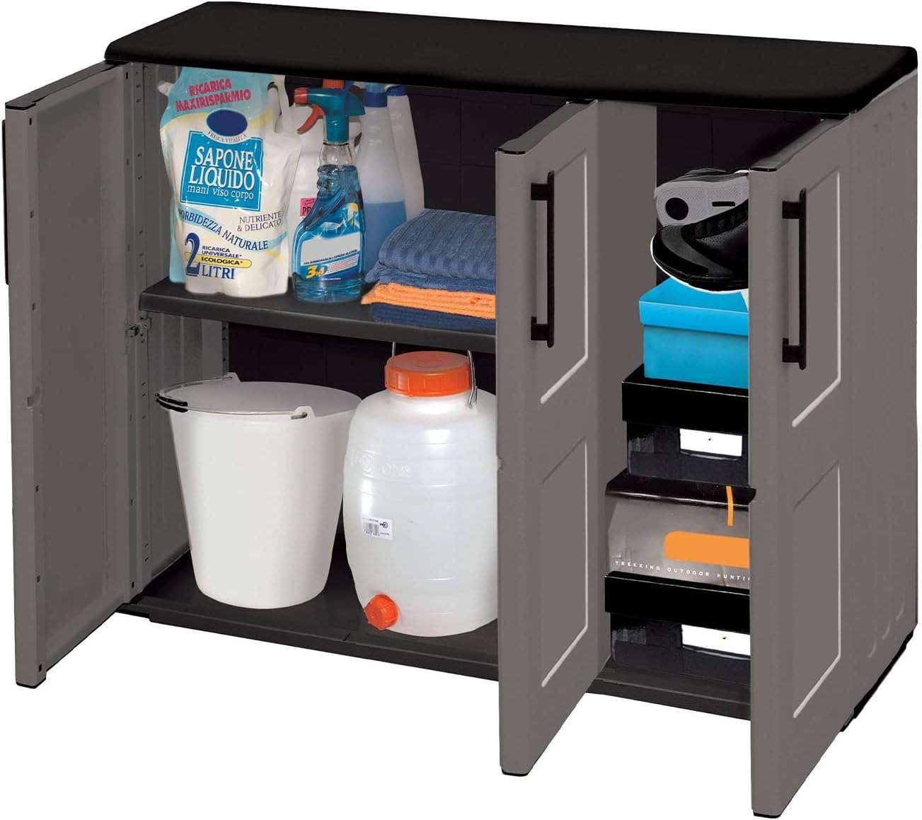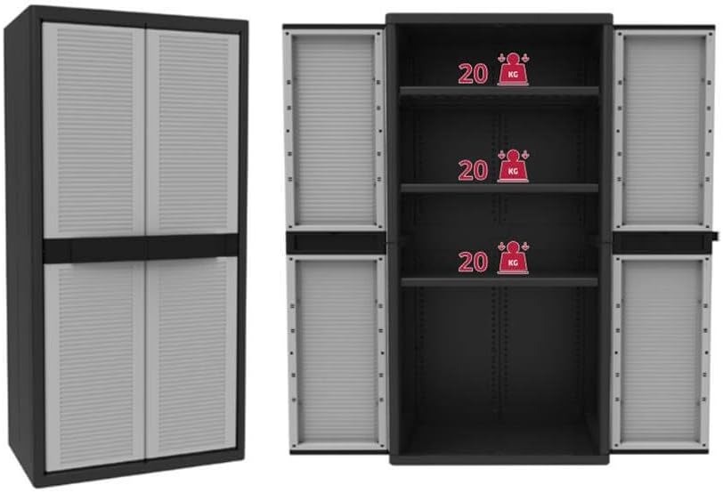 SF SAVINO FILIPPO Mobile in dura plastica di resina grigio e nero con 2 ante e 1 piano da interno per esterno balcone terrazzo casa