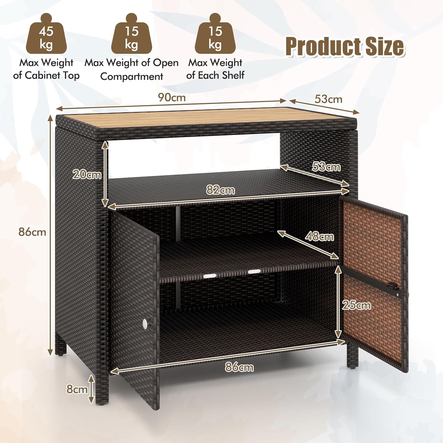 GIANTEX Armadietto da giardino, in rattan, per esterni, con piano di lavoro e scaffale, per giardino, balcone e piscina, 90 x 53 x 86 cm (nero)