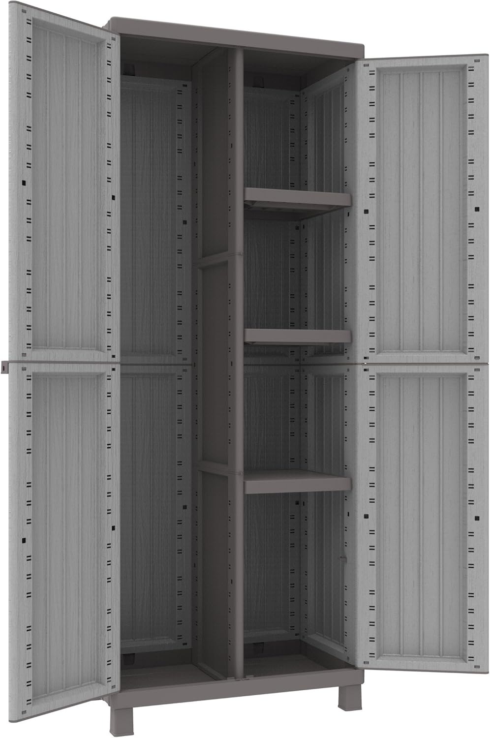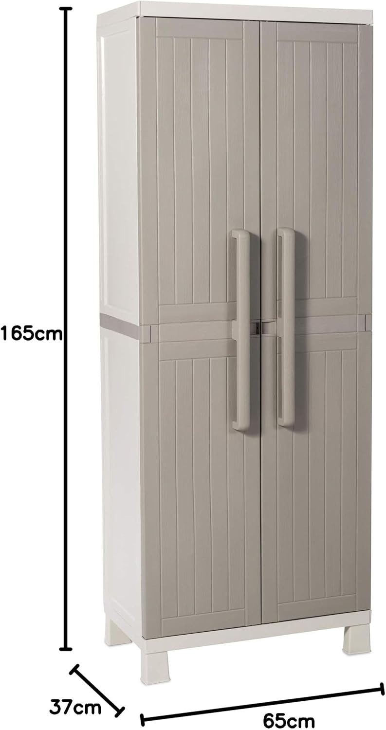 Toomax Armadio Wood Midi tuttopiani con 4 Ripiani, in plastica da Interni ed esterni, colore Grigio Tortora/Grigio Chiaro, dimensioni cm 65x37x165