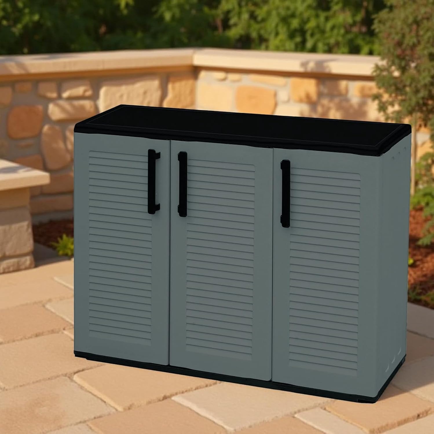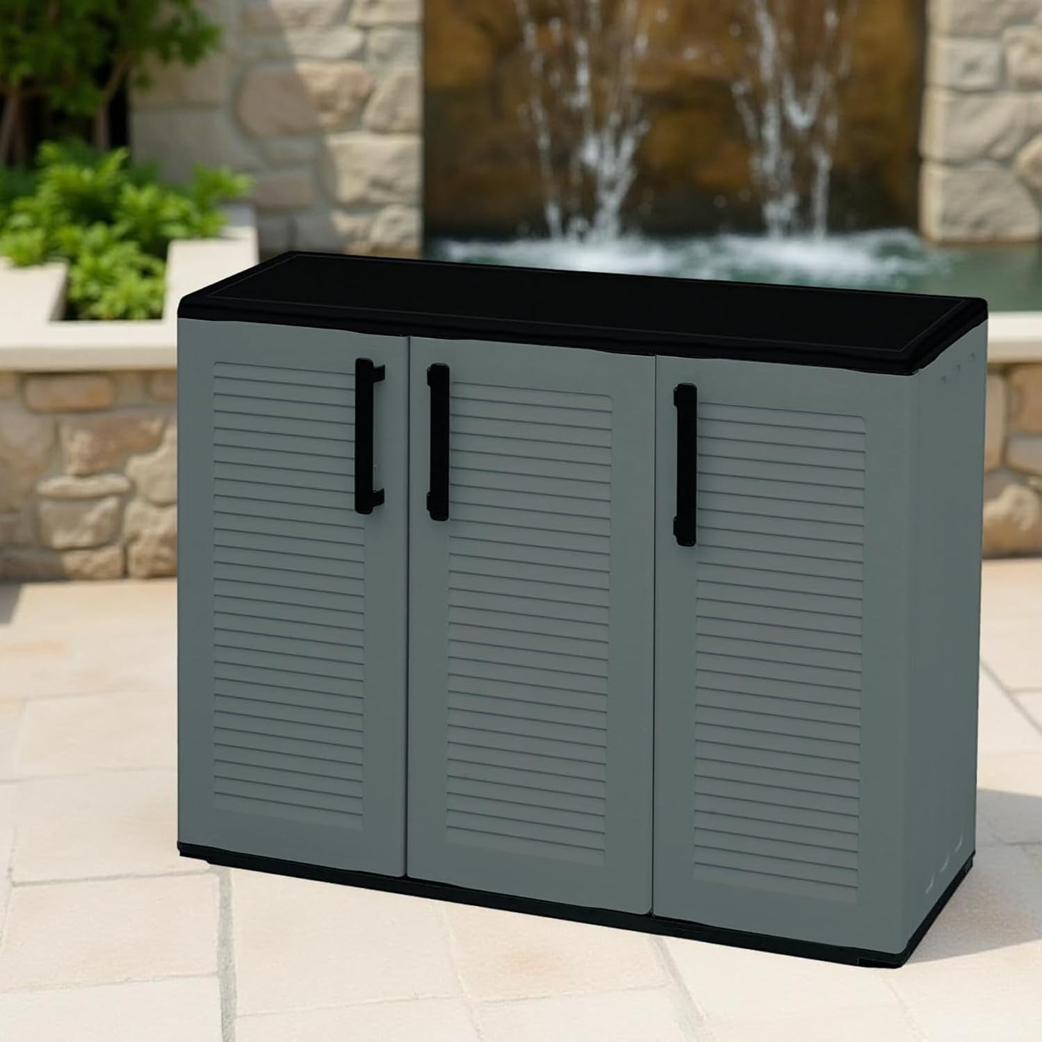 BuyStar Armadio Basso 3 Ante da Esterno 102x37x84h cm Ripiani Regolabili - Antiusura, Idrorepellente, Chiusura a Scatto, Robusto, Anti odore, Lavabile - Plastica Eco Sostenibile Grigio