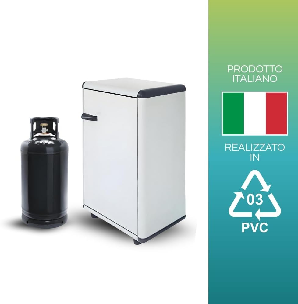 PALUPLUS Porta Bombole Gas a 1 Anta in PVC di Colore Grigio, Misura 59x39x92 cm, Maniglia e Piedi Antiscivolo, Mobile da Esterno, Made in Italy -176C