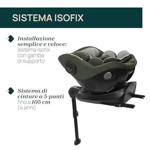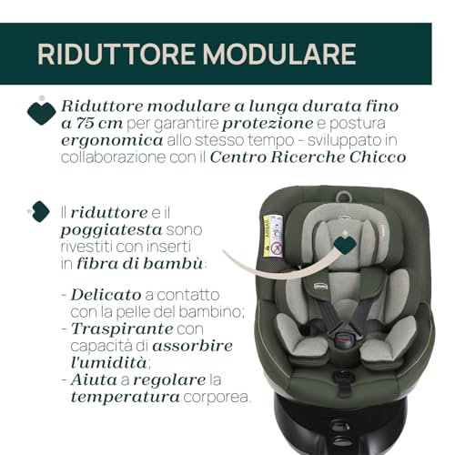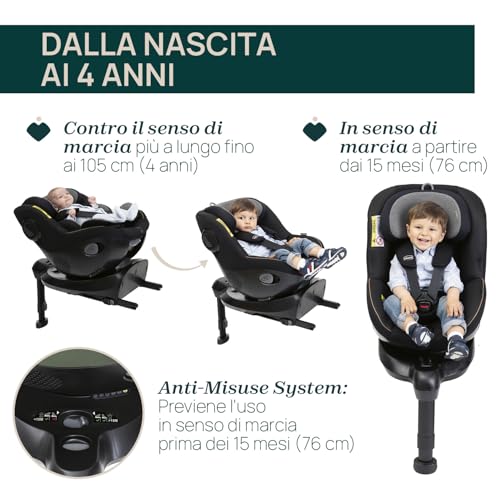 Chicco Seat105 I Size, Seggiolino Auto Omologato ECE R129/03, Girevole A 360°, Reclinabile in 6 Posizioni, Installazione Semplice e Veloce, Riduttore Incluso, 40 105 cm, Gruppo 0/1/2, da 0 a 4 Anni : Prima infanzia