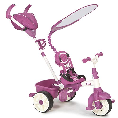 Little Tikes Triciclo 4 in 1 Edizione Sport. Quattro Fasi di Crescita. Con Manico, Manubrio e Sedile Regolabili con Cintura, Tettino di Protezione. Da Montare. Adatto dai 9 Mesi. Rosa e Bianco : Giochi e giocattoli