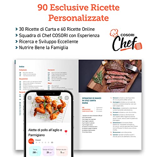 COSORI Friggitrice ad Aria, Air Fryer 6,4L (1,8Kg), Forno Elettrico, Doppia Resistenza, Connessione Wifi, 12 Funzioni Preimpostate, Libro&APP Ricette, 1700W, P583S Grigio Scuro : Amazon.it: Casa e cucina