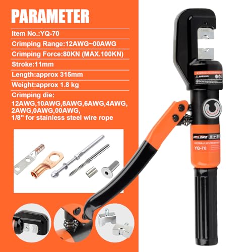HZLZRZ Crimpatrice idraulica e pinza crimpatrice in rame professionale, gamma 12AWG 2/0AWG, 8 paia di matrici per strumento di crimpatura Pex, strumento accessori per presse idrauliche (YQ/70C) : Amazon.it: Fai da te