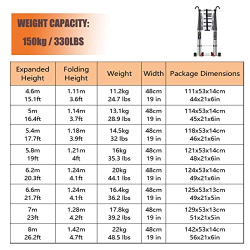 VUIPAJQC Scala telescopica Estensibile, Scala Retrattile in Fibra di Vetro Anti Perno, Scala Pieghevole telescopica Estensibile AE per lavori Domestici sul Tetto, capacità di carico di 330 : Amazon.it: Fai da te