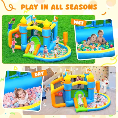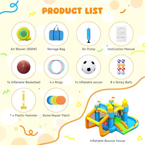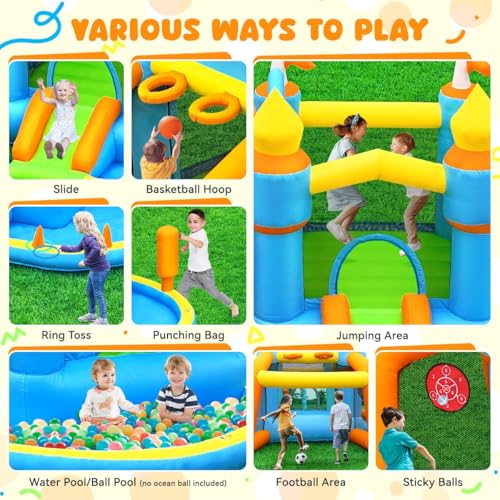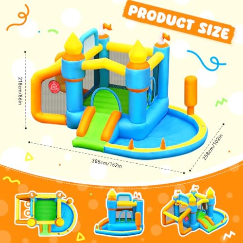 SportBob Castello Gonfiabile per Bambini Esterno Interno con Soffiatore, Scivolo, Piscina di Palline, Salto, Campo da Calcio e Canestro, Adatto per Bambini 3 8 Anni, 385×258×220 cm : Amazon.it: Giochi e giocattoli