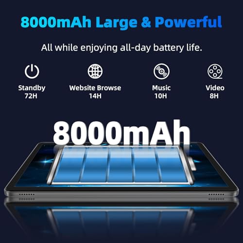 TUOHAITIME Tablet 11 pollici, Tablet Android 14 con processore Octa Core 12GB RAM 128GB ROM, batteria 8000mAh, IPS HD Touchscreen Doppia fotocamera, Bluetooth, WiFi, GPS, Tablet PC con custodia (Blu) : Informatica