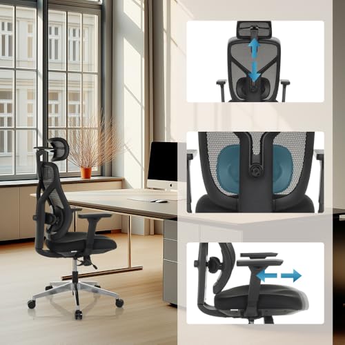 HJH Office sedia da ufficio ergonomica CASSILIS B sedia girevole in rete, schienale regolabile con supporto lombare, altezza fino a 220 cm, nero : Amazon.it: Casa e cucina