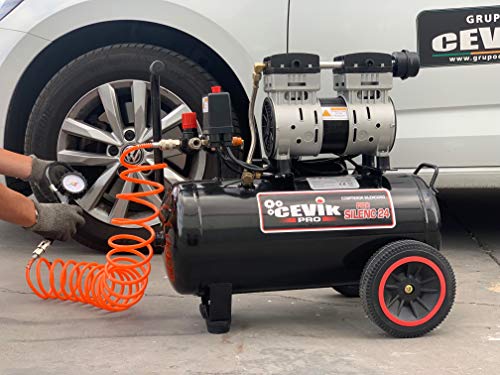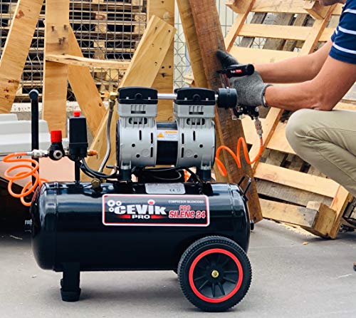 CEVIK PRO CA PRO24SILENC Compressore d'Aria Silenzioso 62 dB Capacità 24 L Motore 1.5HP Pressione Max 8 Bar Portata 150 l/min Senza Olio Senza Manutenzione Compatto e Portatile : Amazon.it: Fai da te
