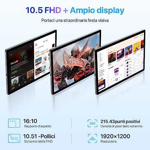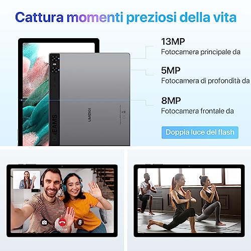 UMIDIGI Android 13 Tablet 10.5 Pollici,Youtube 1080P Widevine L1, A13 Tabet in offerta,Tablet con Sim Telefono,16Go 128Go/2TB Gaming Tablet 7500mAh 18W PD/8Core/13MP/Wifi/BT/GPS/Con Custodia e penna : Informatica