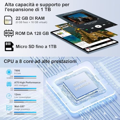 fezawio F10 Tablet 10 Pollici, Tablet Android 14, 22 GB RAM 128 GB ROM |1TB TF |8000mAh |5G Wi Fi |Octa Core |Widevine L1 |2.0Ghz Tablet PC Con Tastiera Mouse Fondina, Migliore Regalo Grigio : Informatica