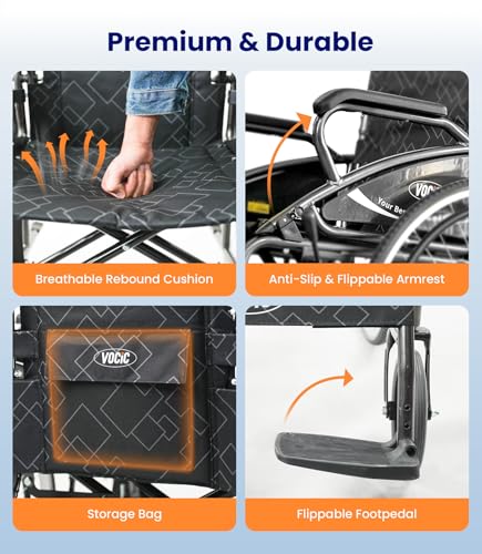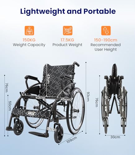 VOCIC U31 Sedia a Rotelle pieghevole leggera 150KG,Carrozzina per disabili in alluminio,Doppio Freno sedia a rotelle per anziani,Pneumatico Solido 60CM per tutti i terreni,Garanzia di 5 anni|Grigio : Amazon.it: Salute e cura della persona