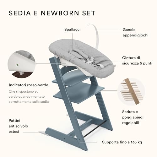 Sedia Stokke Tripp Trapp con Newborn Set e Baby Set, Blu fiordo Design sicuro, regolabile ed ergonomico : Prima infanzia
