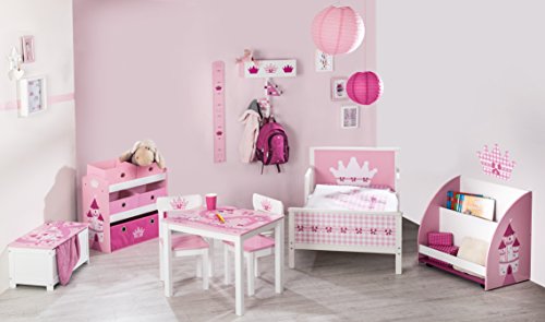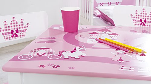 roba Set Tavolo 2 Sedie per Bambini Krone Design con Principessa, Castello, Unicorno dai 18 Mesi ai 10 Anni Panca a 3 Altezze Legno Bianco e Rosa : Casa e cucina