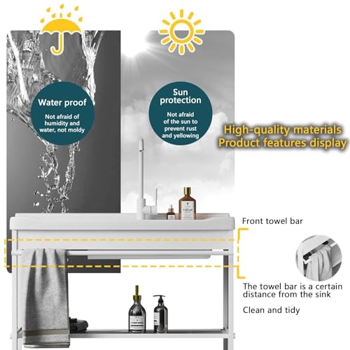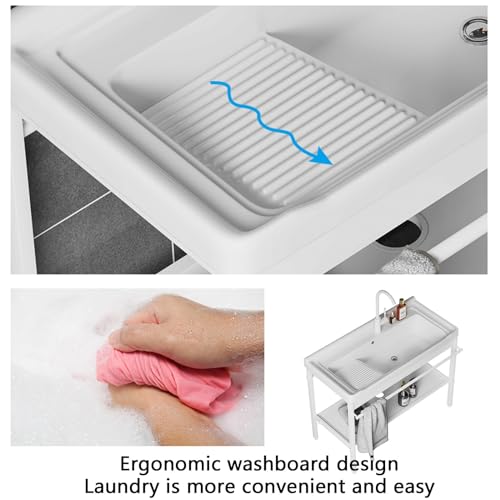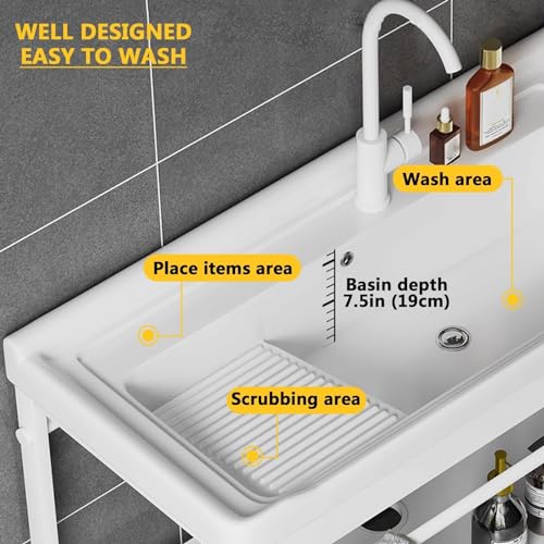 Lavello in ceramica staffa in acciaio inossidabile,vasca da bucato,lavando lavello lavanderia,Con tubi dell'acqua, viti di montaggio, adatto per balcone, giardino, lavanderia,bagno (Size : 32"(81cm) : Amazon.it: Fai da te