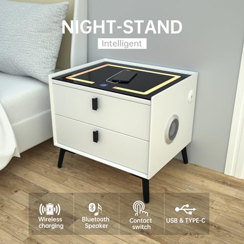 Comodini con stazione di ricarica wireless, porta USB, luci LED e altoparlante a 3 colori, tavolino moderno in legno per camera da letto, dormitorio e soggiorno, 2 cassetti portaoggetti : Amazon.it: Casa e cucina