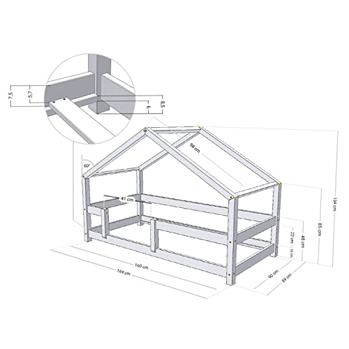 Benlemi Letto a capanna per bambini Lucky 90 x 160 Grigio Chiaro : Casa e cucina