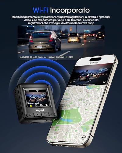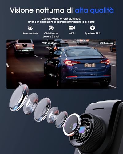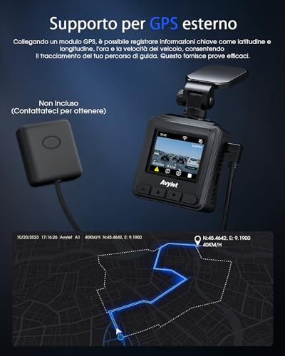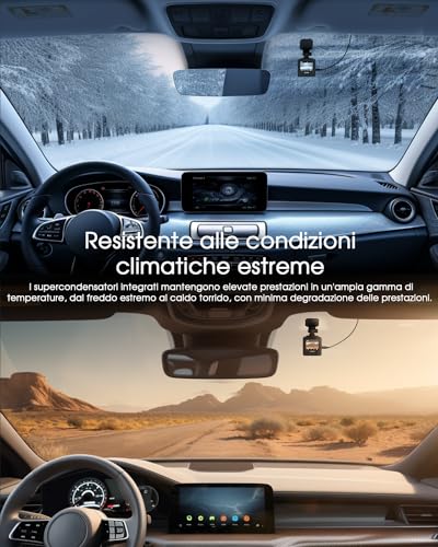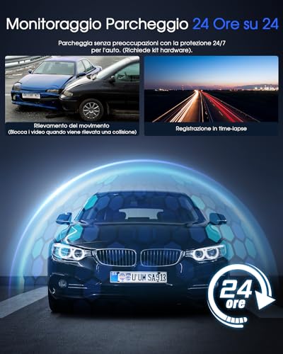 2K Dash Cam Wi Fi Con Scheda 64GB, Telecamera per Auto Mini con APP, Supporta Modulo GPS Esterno, Grandangolare di 170°, Visione Notturna, 24H Monitor di Parcheggio, Rilevamento di Movimento, G Sensor : Elettronica