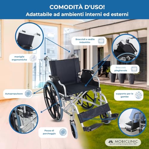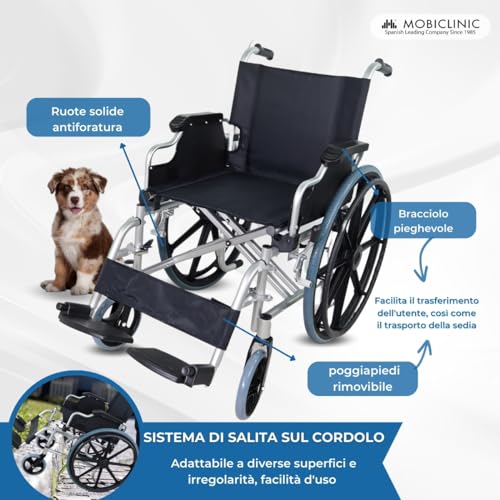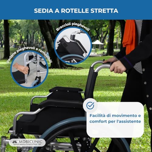 Mobiclinic®, Sedia a rotelle, Pieghevole, Leggera, Sistema sottoporta, Freno di stazionamento, Modello ópera, Alluminio, Ruote piene, Braccioli pieghevoli, Pedane estraibili, Ergonomica : Amazon.it: Salute e cura della persona