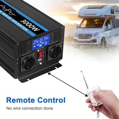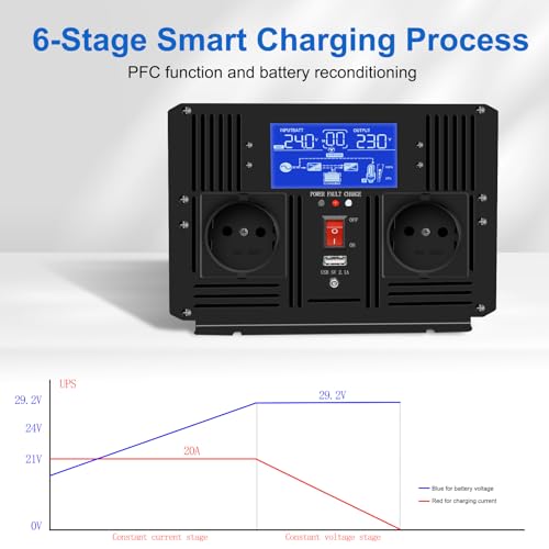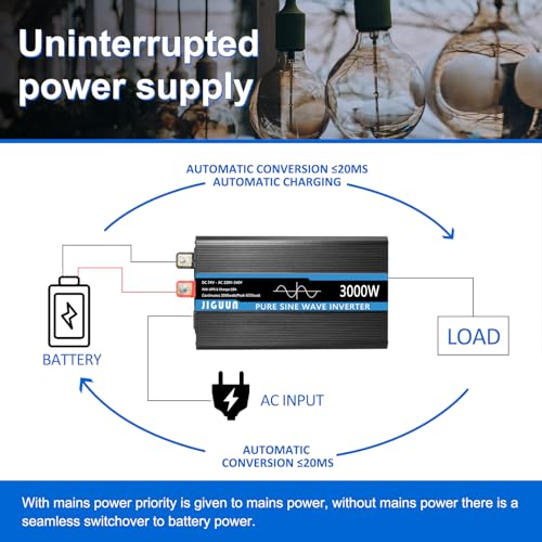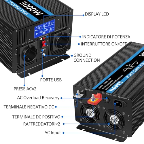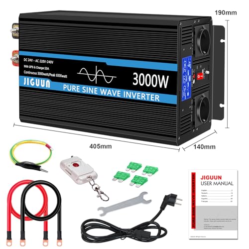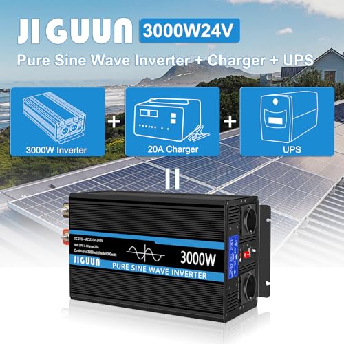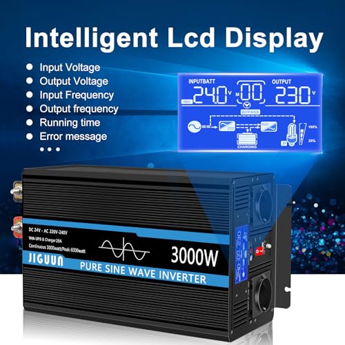 JIGUUN 3000W Inverter Onda Pura 24V 220V Trasformatore con Caricatore 20A e Circuito di priorità di Rete e ups,2 Prese EU, Telecomando Wireless e Display a LCD Potenza di Picco 6000W : Amazon.it: Elettronica