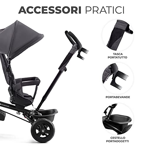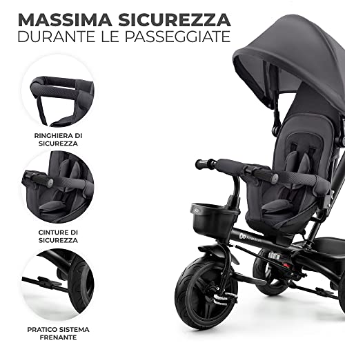 Kinderkraft AVEO Triciclo bambini dai 9 Mesi fino 25 kg, Passeggino con Maniglione del Genitore regolabile, Bici, Compatto pieghevole, Sedile girevole Fronte Mamma e Strada, Ruota libera, Grigio : Giochi e giocattoli