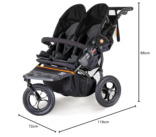 Out 'n' About Passeggino doppio Nipper, passeggino laterale per neonati, 4 anni, passeggino doppio per tutti i terreni, colore nero Summit, parapioggia e cestino rimovibile inclusi : Casa e cucina