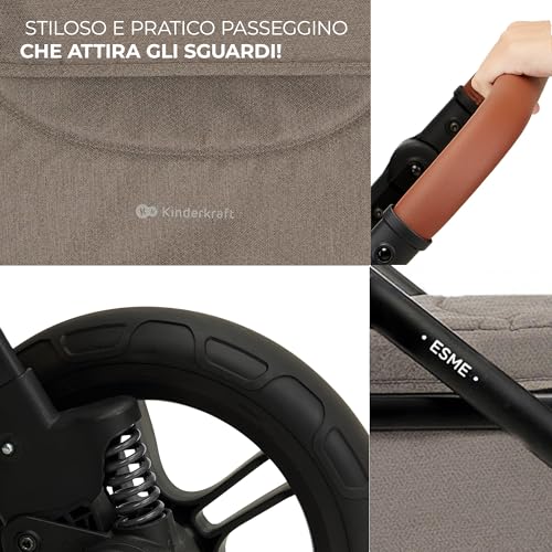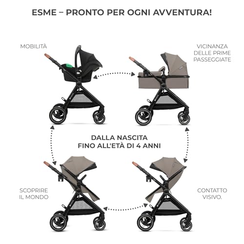 Kinderkraft ESME Trio passeggino neonati 3 in 1 fino 26 kg, con Ovetto I SIZE 40 75 cm, Carrozzina reversibile fronte mamma e strada, Pieghevole, Beige : Prima infanzia