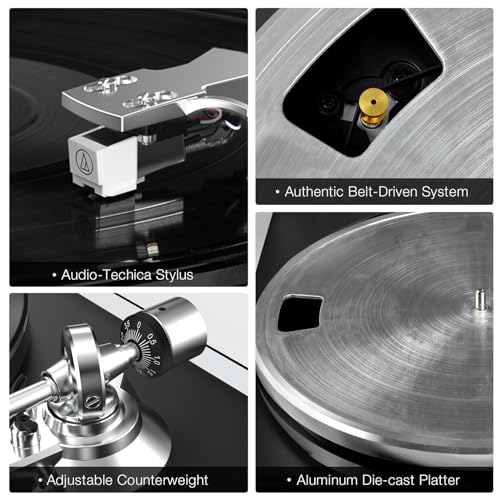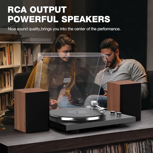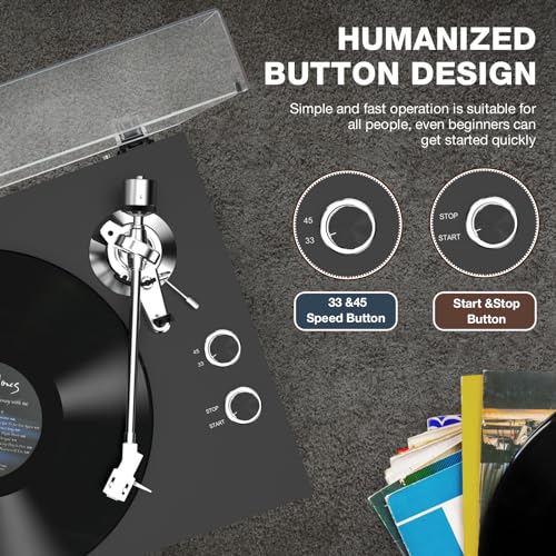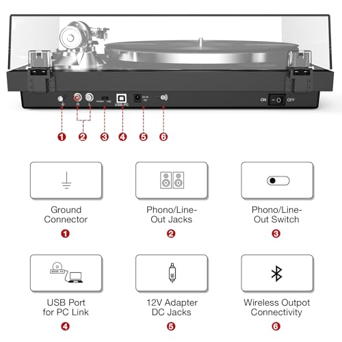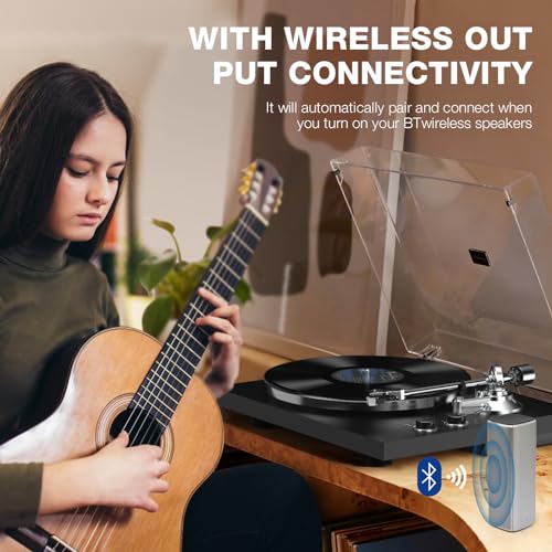 Giradischi Vinili Trasmissione a Cinghia con Connettività di Uscita Wireless, Lettore con Contrappeso Regolabile e Cartuccia Magnetica e 2 Velocità 33/45 RPM, Conversione USB, Linea Fono : Elettronica