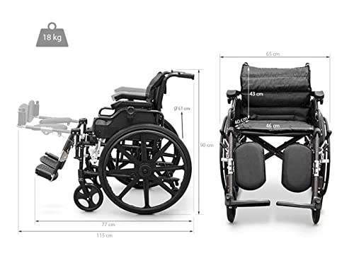 QUIRUMED Carrozzina pieghevole in alluminio. Bracciolo pieghevole, ruote rimovibili, poggiapiedi elevabile a 90º, sedile e schienale con cuscino imbottito, freni manuali, antiribaltamento : Amazon.it: Salute e cura della persona