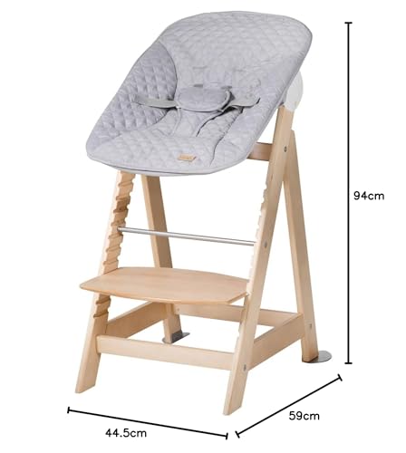 roba Seggiolone Evolutivo Born Up 2 in 1, Sdraietta Reclinabile roba Style Grigia, Fodera Impermeabile, Altezza Regolabile, Robusto e Resistente, Ergonomico, dalla Nascita, Legno Naturale : Prima infanzia