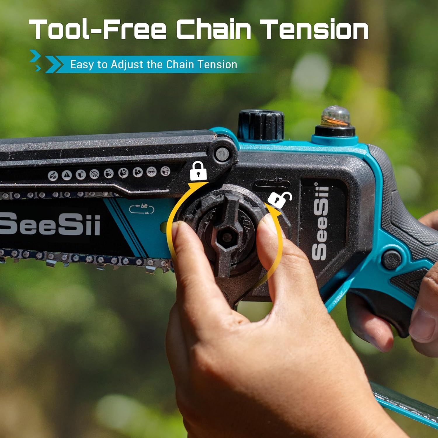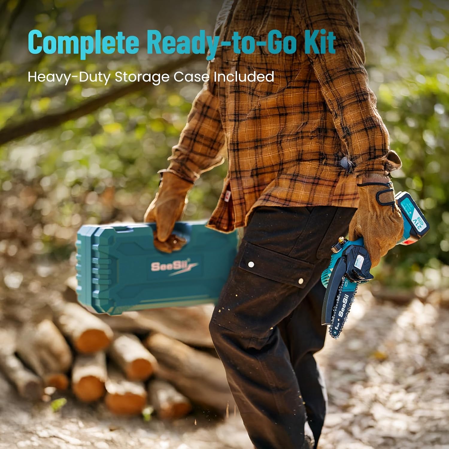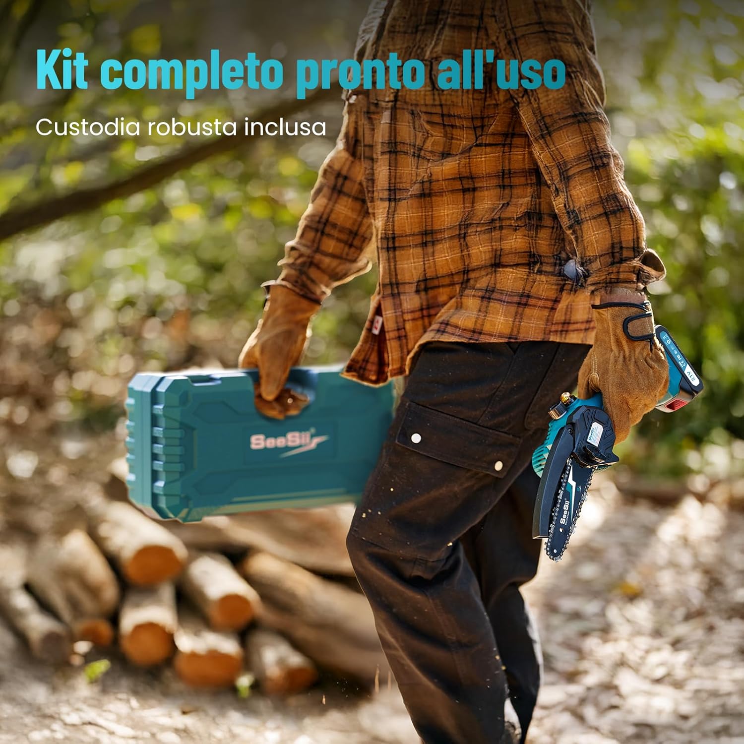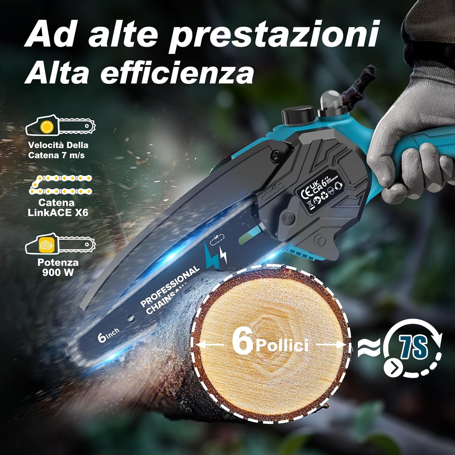 SEESII Mini Motosega a Batteria 8000mAh, 900W 6 Pollici Motosega Elettrica per Potatura con Pompetta Olio e Catena di Ricambio, Motosega da Potatura per il Taglio del Legno Giardini, 6C10SM