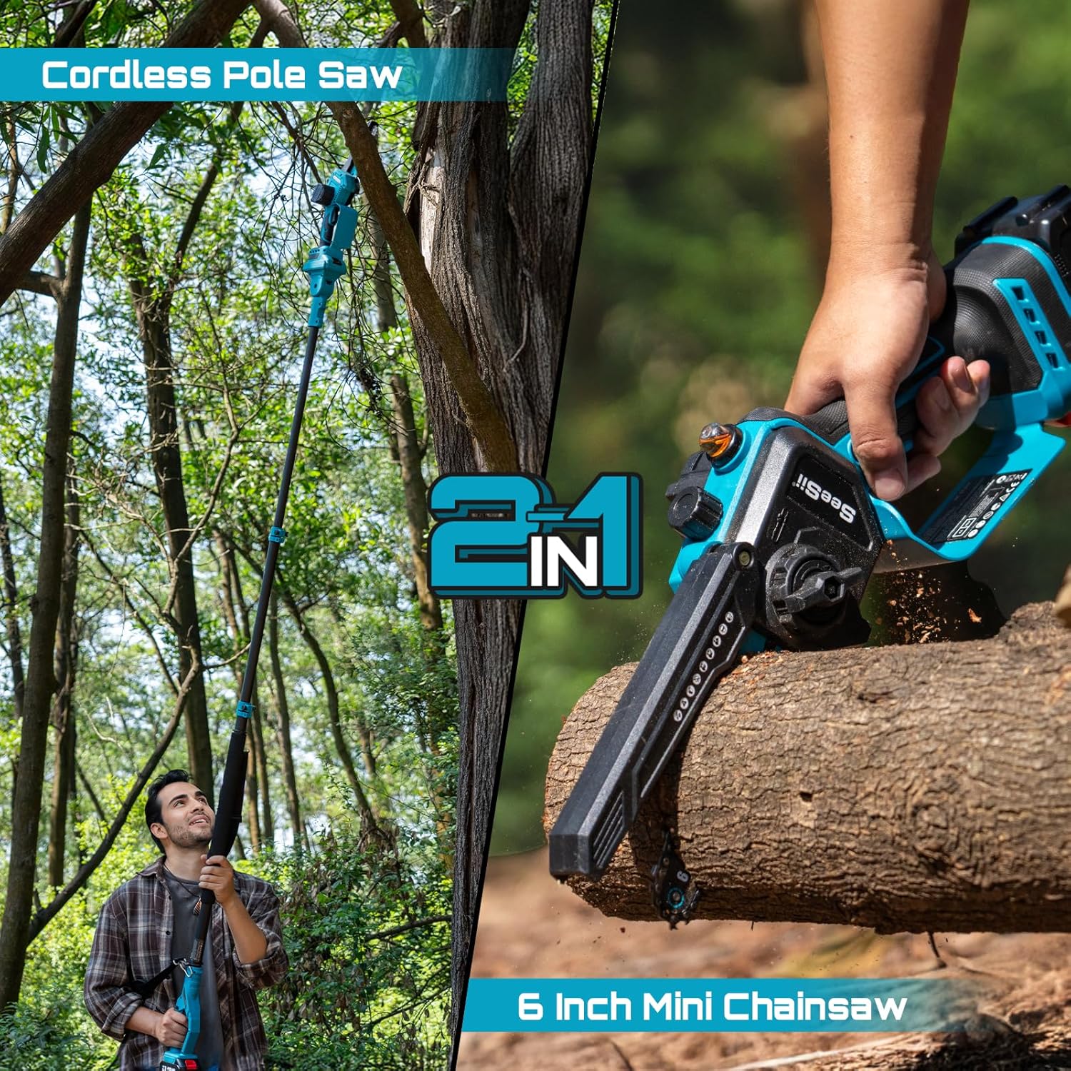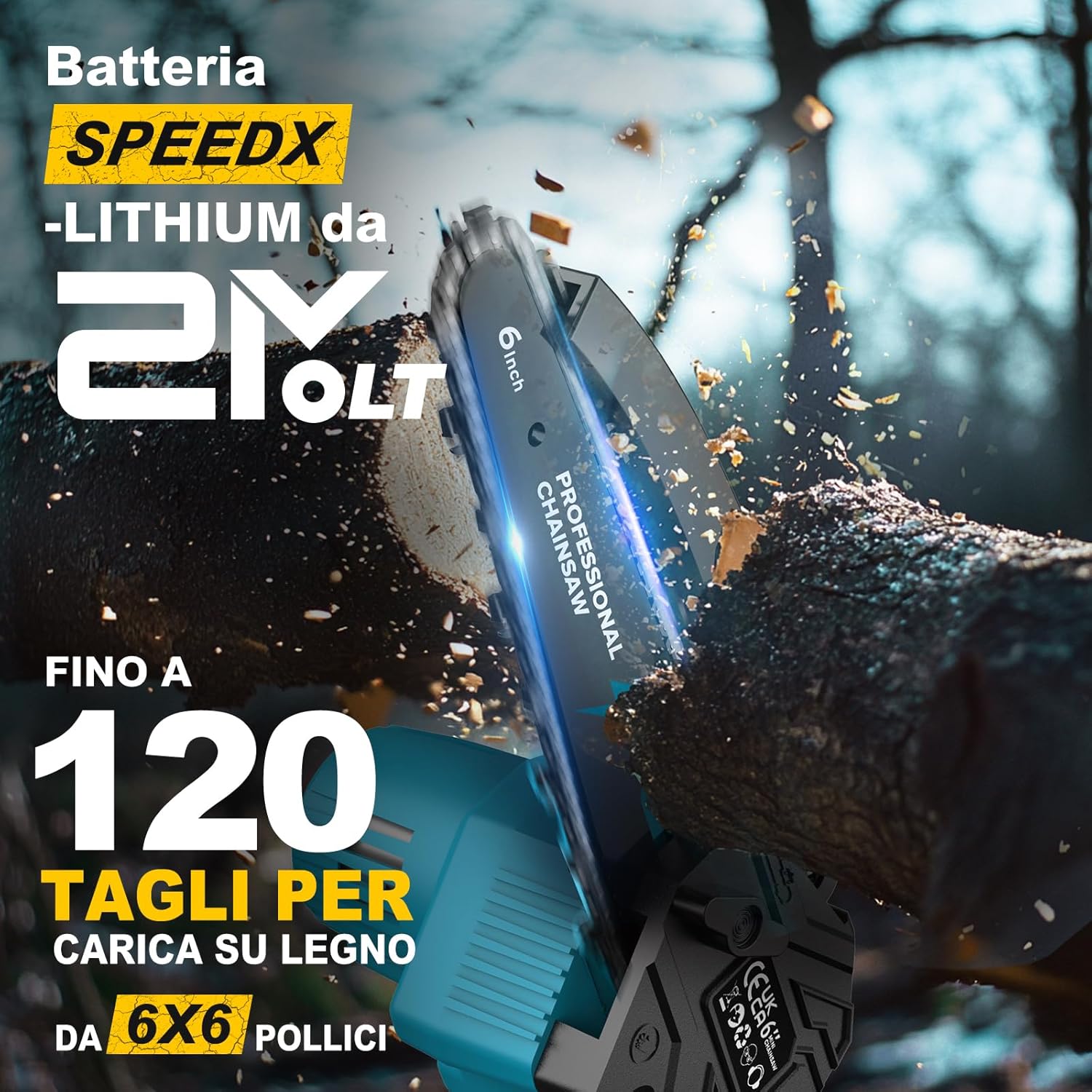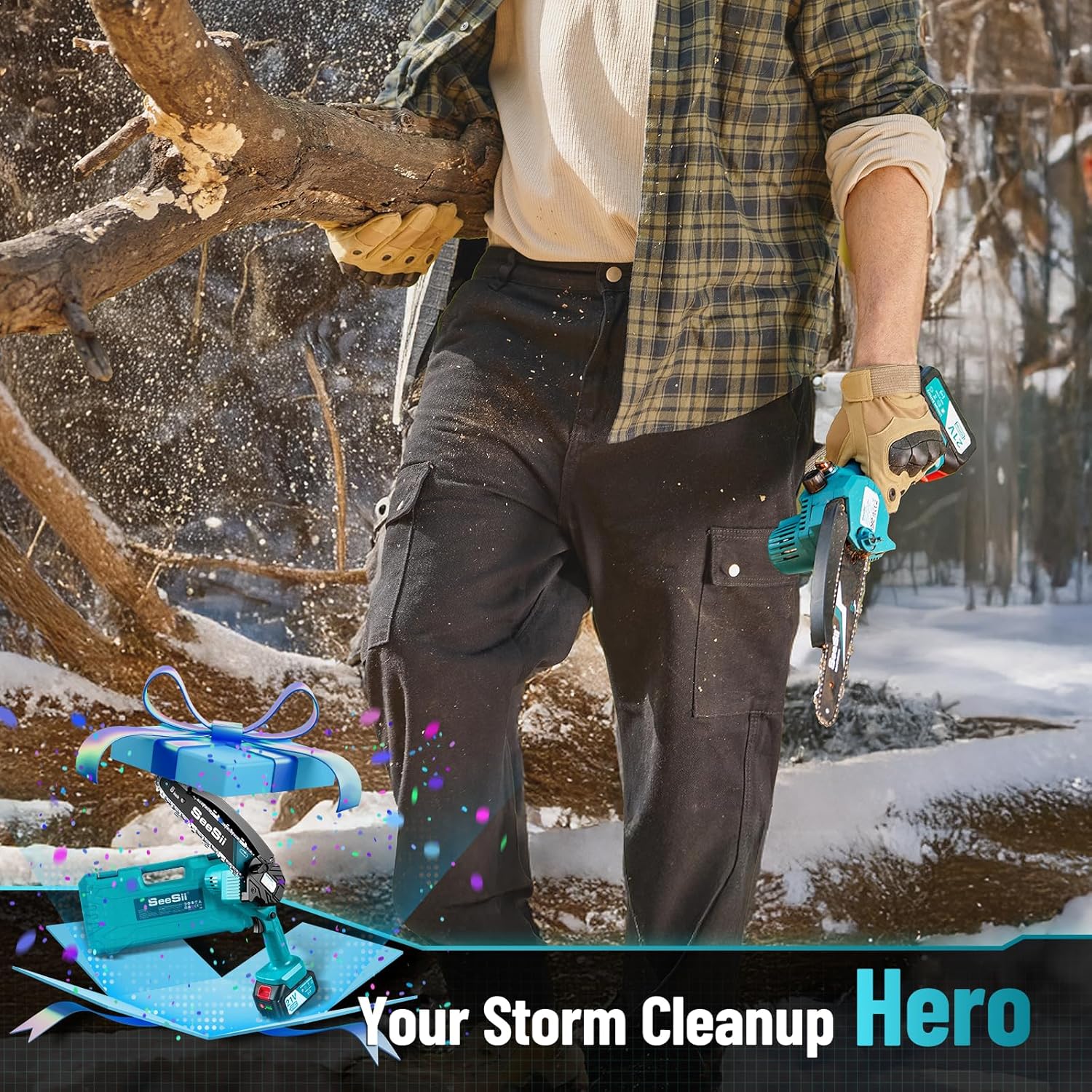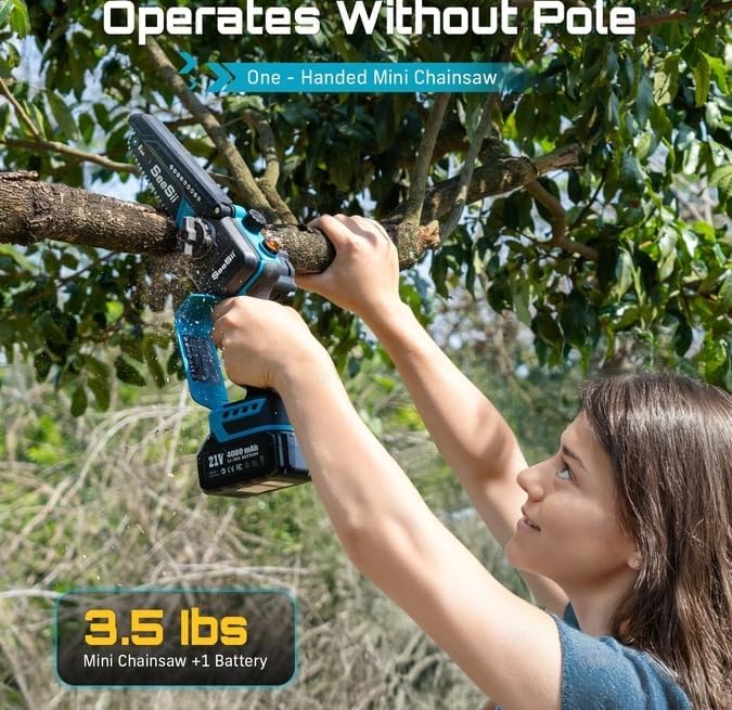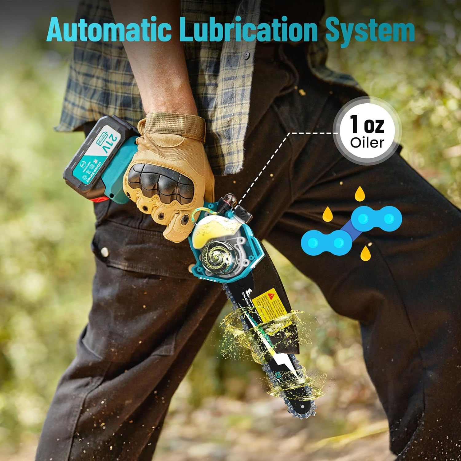 SEESII Mini Motosega a Batteria 8000mAh, 900W 6 Pollici Motosega Elettrica per Potatura con Pompetta Olio e Catena di Ricambio, Motosega da Potatura per il Taglio del Legno Giardini, 6C10SM